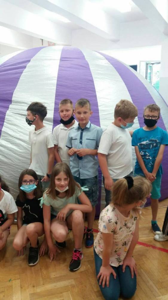 17 czerwca 2021 r. w naszej szkole na sali gimnastycznej stanęła nadmuchiwana kopuła. Wchodząc do jej wnętrza, uczniowie z klas I-VIII i przedszkola, mieli okazję przenieść się w świat tajemniczych oceanów. Zaprezentowany w kopule materiał przybliżył uczniom zagadnienia życia morskiego na Ziemi. Interaktywny pokaz zrobił wrażenie na widzach, umożliwił łatwiejsze przyswojenie wiedzy przyrodniczej, rozbudził zainteresowania i ciekawość uczniów. Ta inspirująca podróż w głąb mórz i oceanów była dla uczniów źródłem wielu wrażeń.