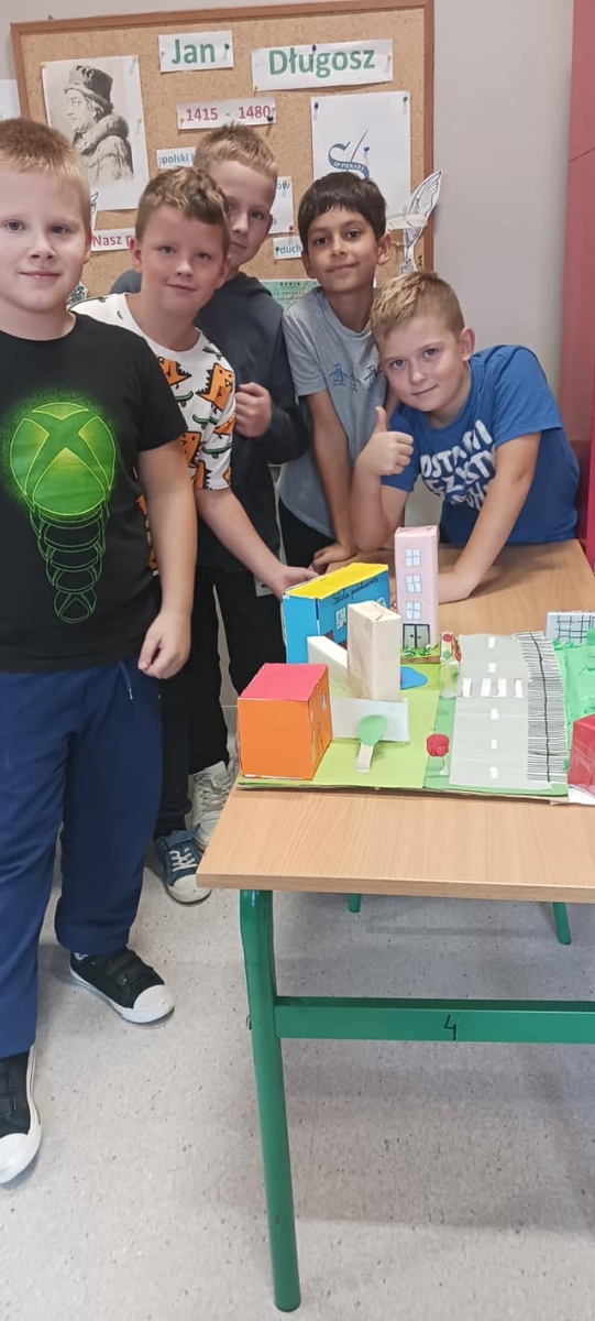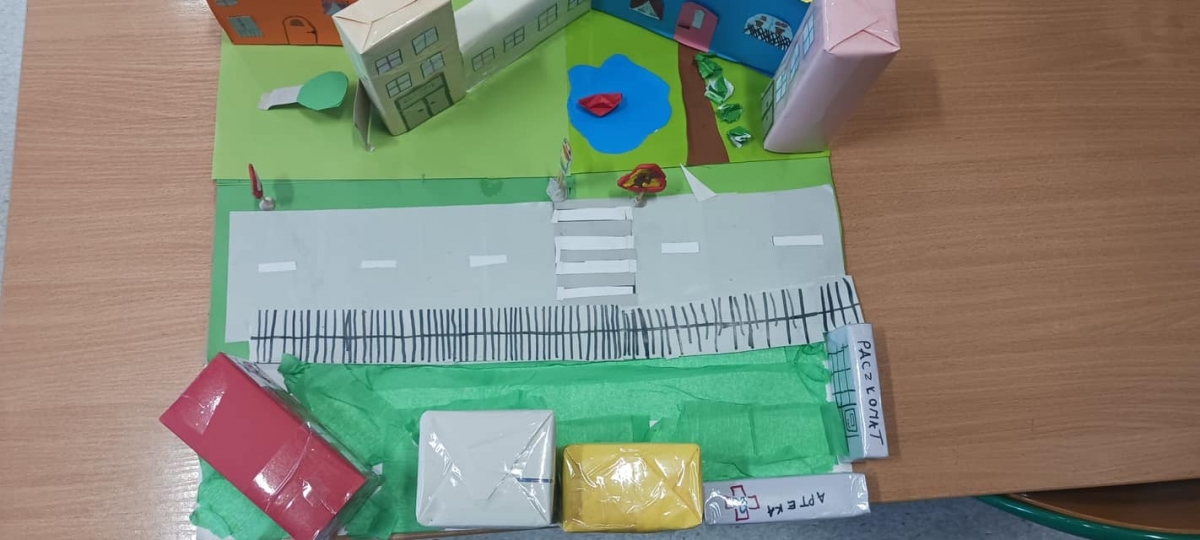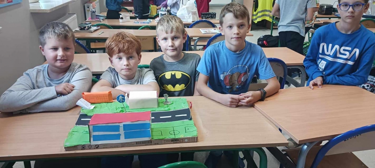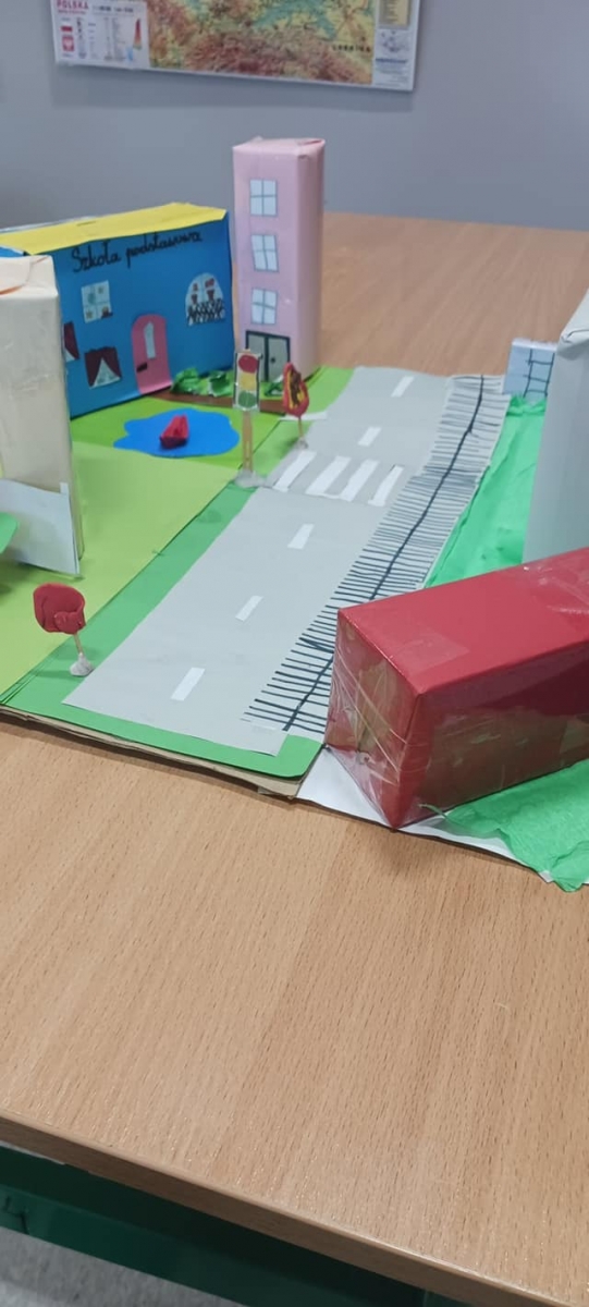 Uczniowie klasy III w ramach akcji „Odblaskowa Szkoła” wykonali makiety przedstawiające swoją miejscowość, w tym bezpieczne przejście na drugą stronę jezdni. Uczniowie wspólnie wybrali hasło przewodnie dla wykonanych prac: "Odblaskami świecimy, wzorowo na drugą stronę przechodzimy".