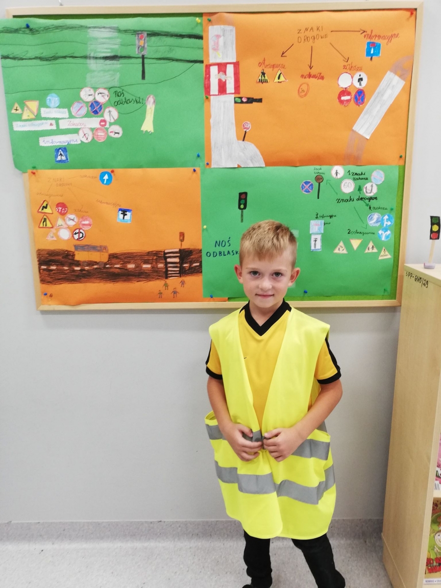 Należy pamiętać o edukacji, szczególnie najmłodszych uczestników ruchu, która jest pierwszym krokiem do poprawy bezpieczeństwa dzieci w drodze do szkoły. Trzeba też uczyć przewidywania sytuacji. Kształtowanie u dzieci właściwych nawyków to trudna praca, ale opłaca się ją wykonać, bo nawyki te zostają na całe życie. Trzeba uczulać uczestników ruchu drogowego na fakt, że jeżeli widzą nadjeżdżający z przeciwka samochód lub jego światła, to i kierujący pojazdem ich widzi. To błąd! W sytuacji gdy pieszy zlewa się z otoczeniem, kierowcy trudno jest go dostrzec, najsłabiej jest widoczny w ciemnościach, gdy porusza się po nieoświetlonej drodze, na dodatek w ciemnym ubraniu i bez elementów odblaskowych. Obowiązkiem nas dorosłych jest dbanie o ich bezpieczeństwo dzieci, dlatego uczniowie klasy I tworzyli plakaty pt. „Bezpieczna droga do i ze szkoły”, promując treści dotyczące bezpieczeństwa na drodze oraz znajomość znaków drogowych dotyczących pieszych.