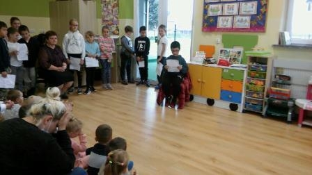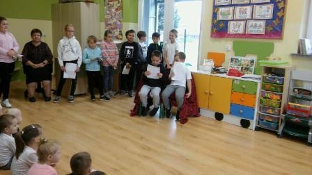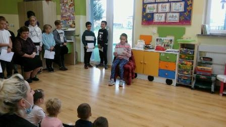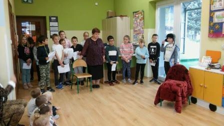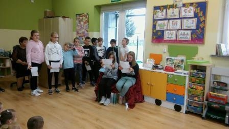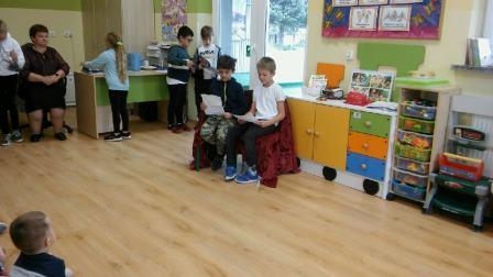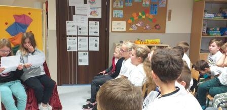 Uczniowie klasy 3 czytali swoim młodszym kolegom z przedszkola, w oddziale przedszkolnym dzieciom książki czytała ich pani, a przedszkolaki rysowały ilustracje. Pierwszaki słuchały z uwagą, jak pani z biblioteki czytała im książkę "Pierwszaki z kosmosu". W klasie 2 uczniowie słuchali książki czytanej przez panią wychowawczynię. Trzecioklasiści samodzielnie czytali wiersze Jana Brzechwy, a uczniowie klas starszych w czasie zajęć języka polskiego czytali fragmenty lektur, a także teksty z podręcznika.