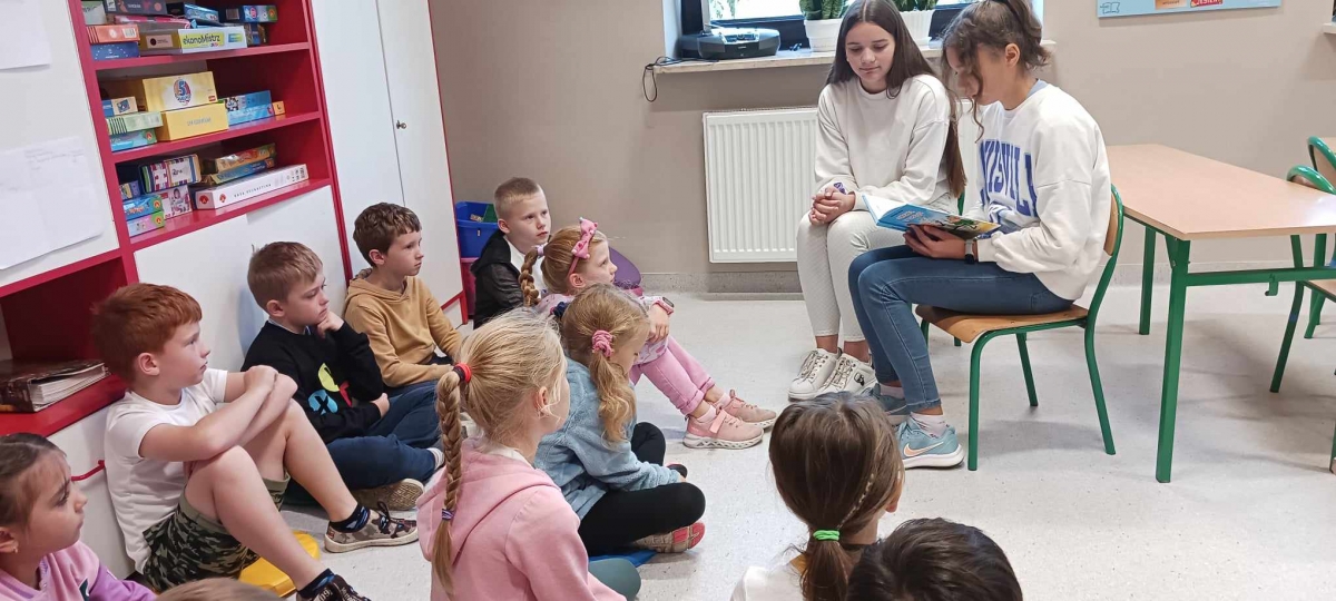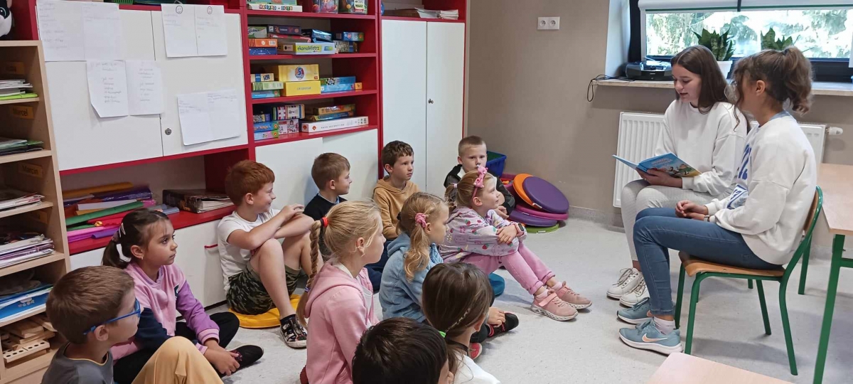 Najstarsi wolontariusze czytali swoim młodszym kolegom z przedszkola, w oddziale przedszkolnym dzieciom książki czytała także ich pani.
