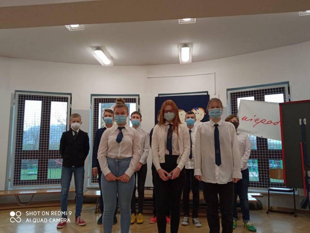 Ósmoklasistów serdecznie powitała Pani Dyrektor i przypomniała o zasadach obowiązujących w czasie trzydniowej próby generalnej.