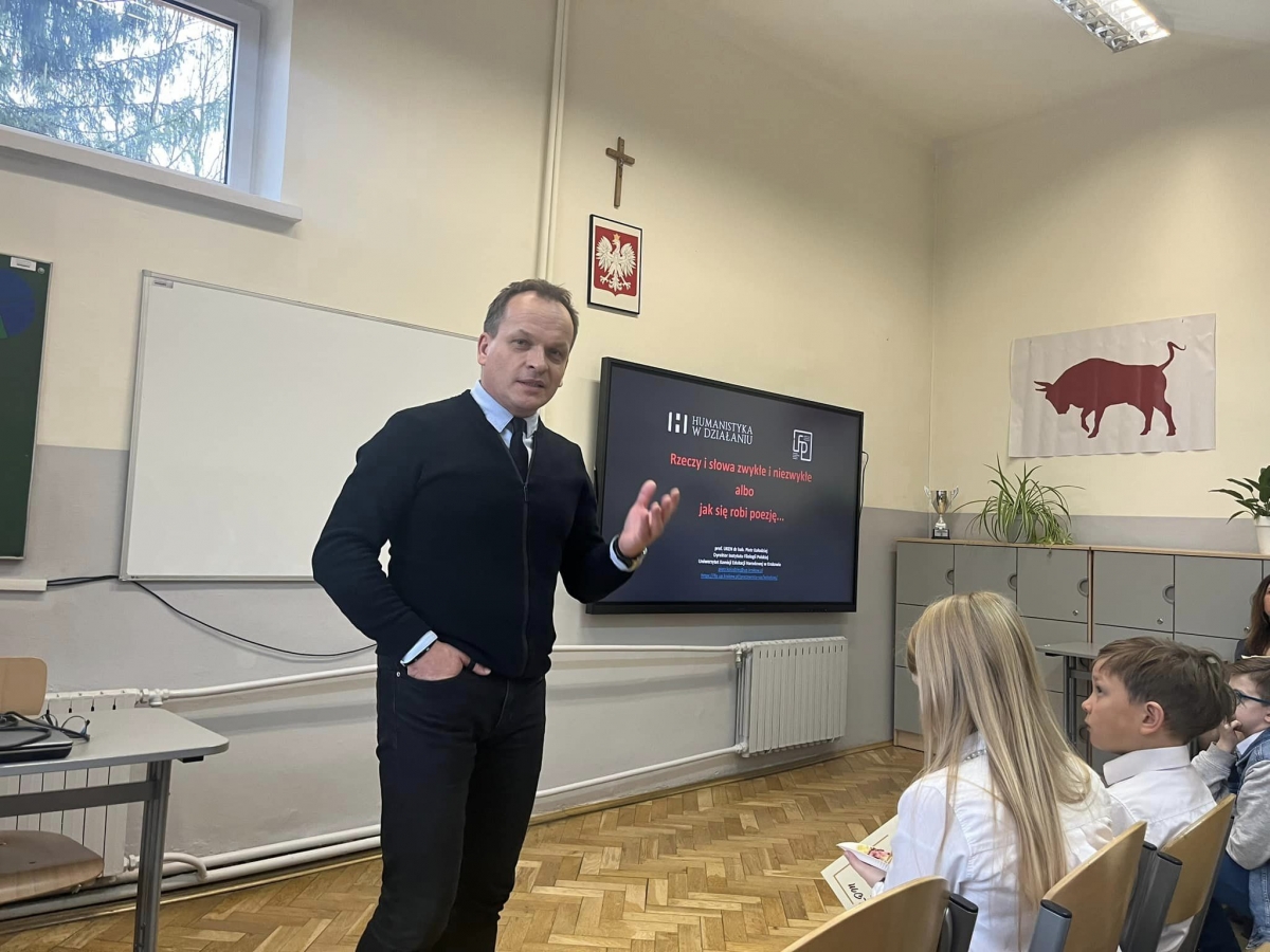 Na zakończenie konkursu uczniowie i nauczyciele z uwagą wysłuchali wykładu prof. UKEN dr. hab. Piotra Kołodzieja, który obejmuje konkurs patronatem naukowym.