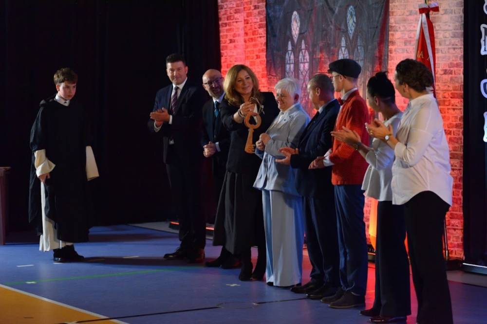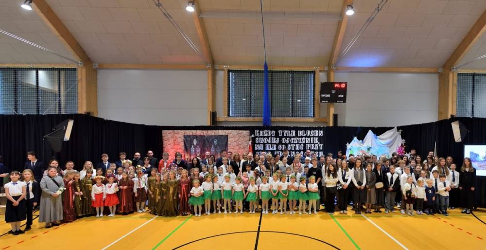 W finalnej scenie sam Jan Długosz przekazał klucze do szkoły przedstawicielom władz lokalnych, dyrekcji, rodzicom i uczniom Po pięknym spektaklu Pani Dyrektor zaprosiła gości do wspólnego zdjęcia, na wielki tort i poczęstunek. Podczas uroczystości panowała ciepła, życzliwa atmosfera i nikomu nie spieszyło się do domu tym bardziej, że każdy mógł skosztować wojskowej grochówki.