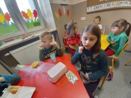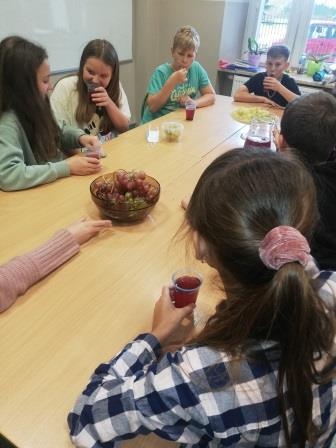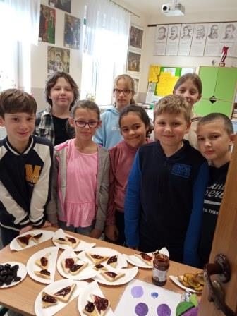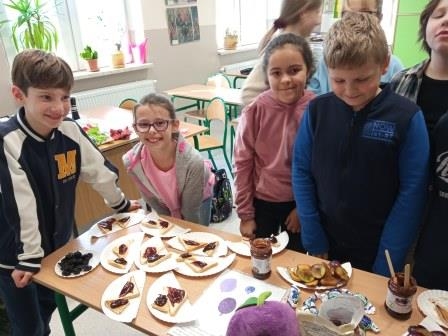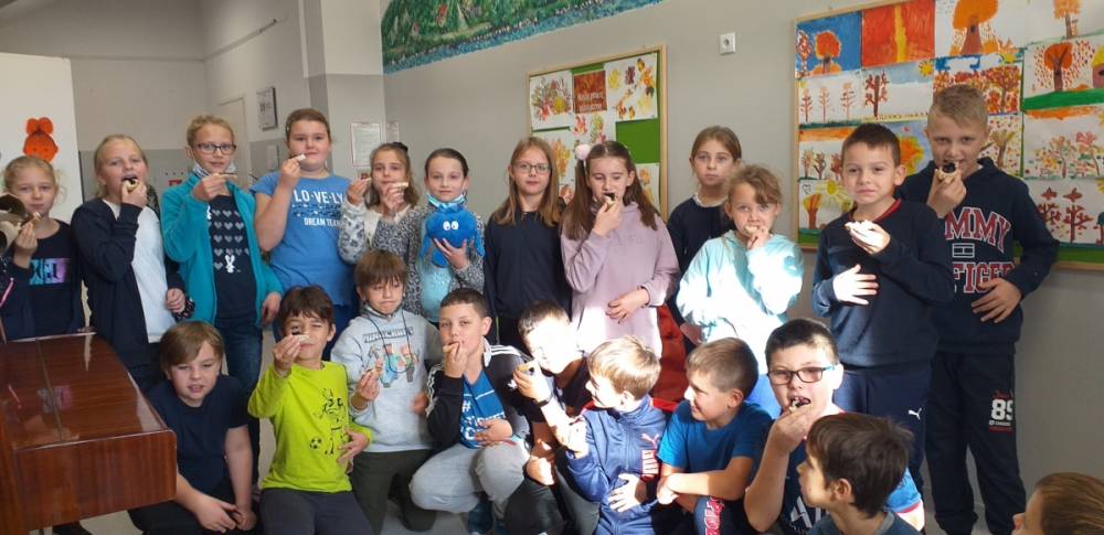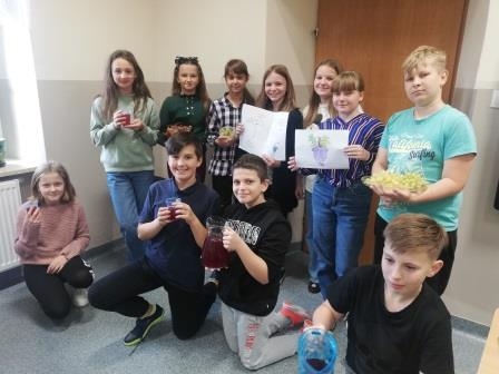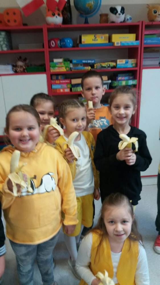 05 listopada w naszej szkole obchodziliśmy "owocowy piątek". Głównym celem akcji było zachęcenie uczniów do codziennego sięgania po kolorowe owoce, wyrabianie i utrwalenie nawyków ich jedzenia jako źródła cennych witamin, błonnika i soli mineralnych. W tym dniu w szkole było kolorowo, radośnie, smacznie i zdrowo. Drzwi klas ozdobiły dekoracje i plakaty informujące o zdrowych właściwościach owoców. Uczniowie rozwiązywali zagadki na temat krajowych i egzotycznych owoców oraz jedli owocowe drugie śniadanie.