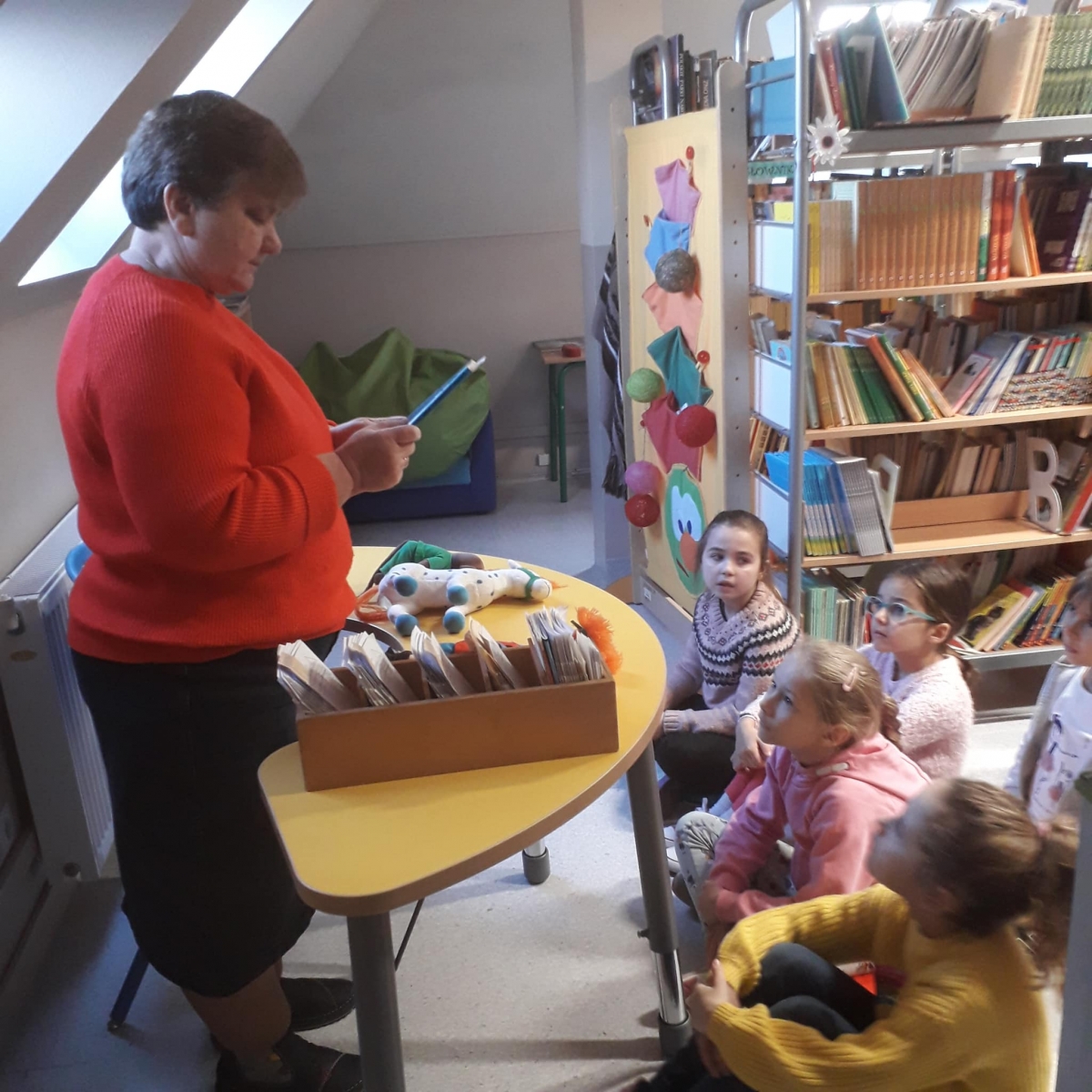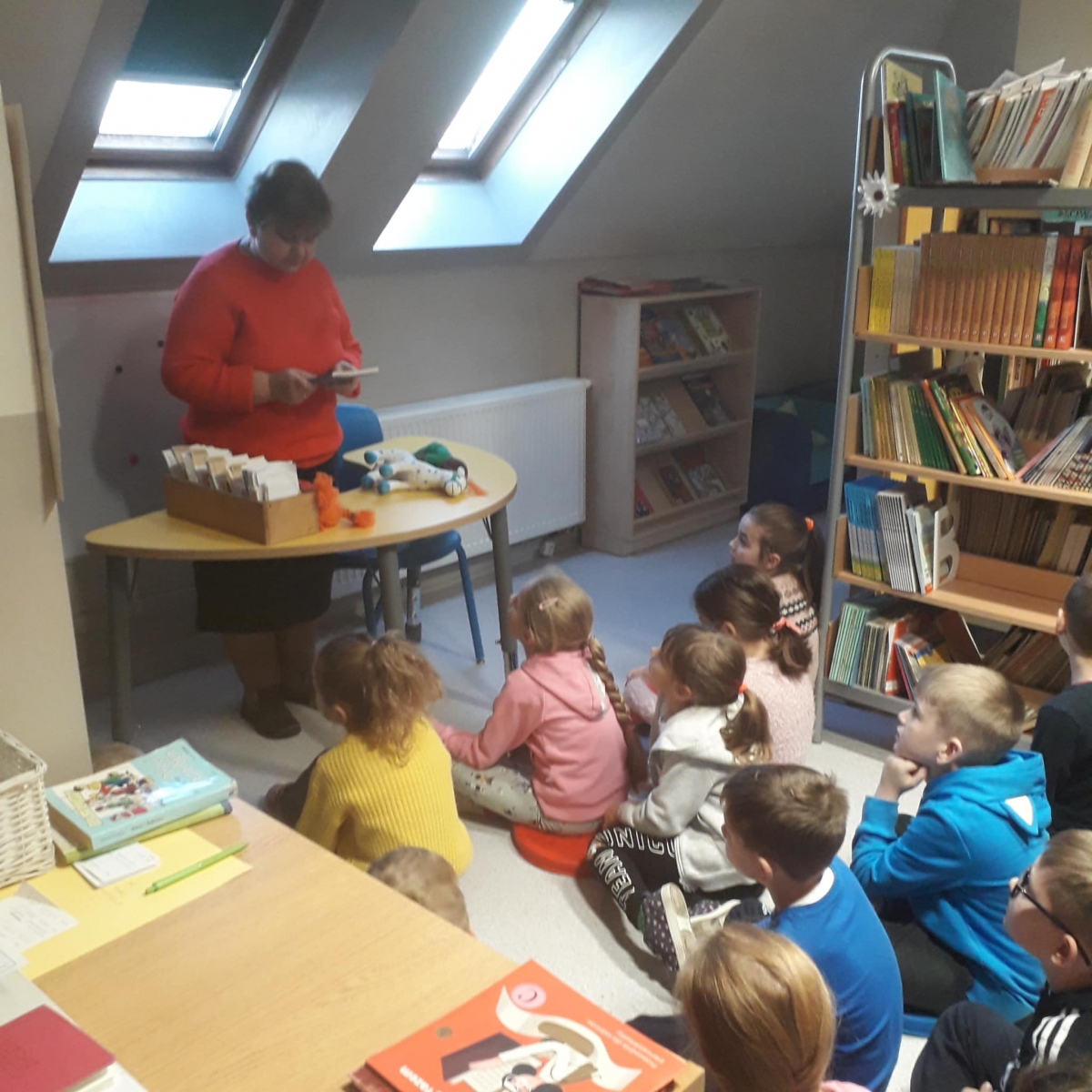 30 listopada uczniowie klasy I odwiedzili bibliotekę szkolną, gdzie uczestniczyli w zajęciach przygotowanych przez panią bibliotekarkę Urszulę Lusinę.
