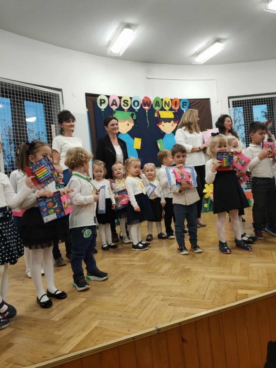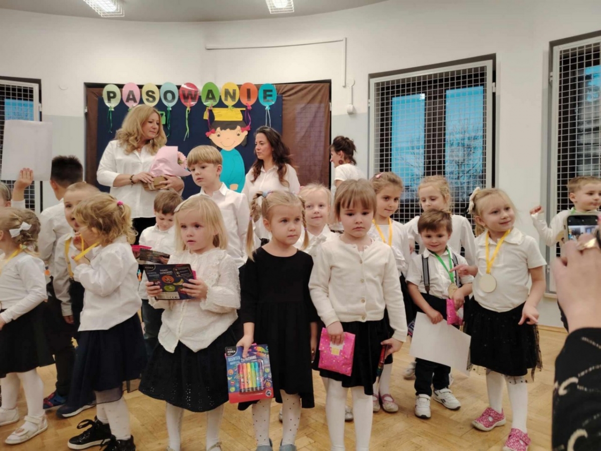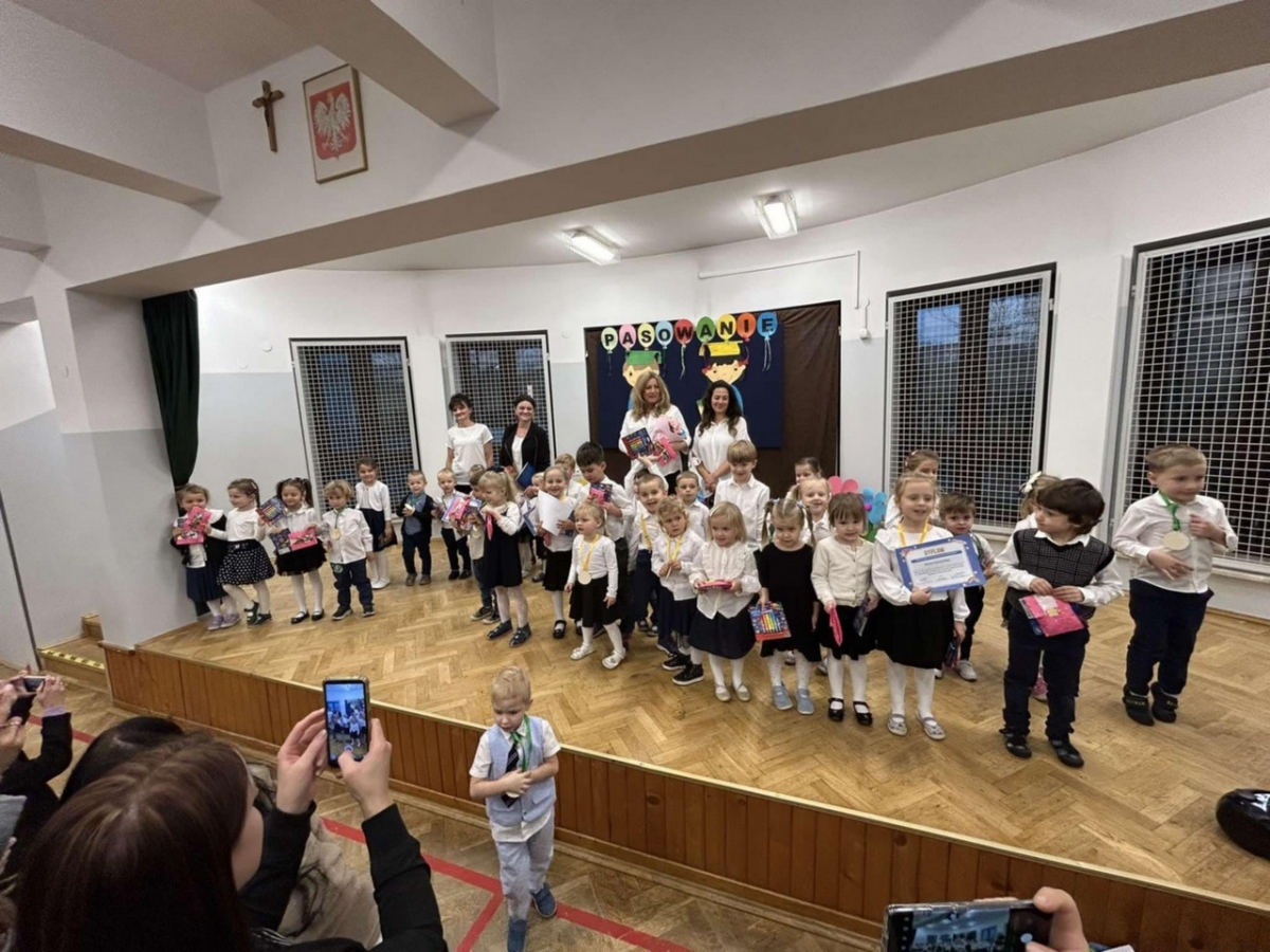 W dniu 05.11.2024 odbyła się Uroczystość Pasowania na przedszkolaka. Wśród zaproszonych gości była Pani Dyrektor, grono pedagogiczne oraz Rodzice. Wszystkie dzieci pięknie wystąpiły na scenie i usłyszały od widowni gromkie brawa. Pani Dyrektor uroczyście pasowała przedszkolaków i wręczyła im dyplomy oraz upominki. Na końcu odbyła się pamiątkowa sesja zdjeciowa.