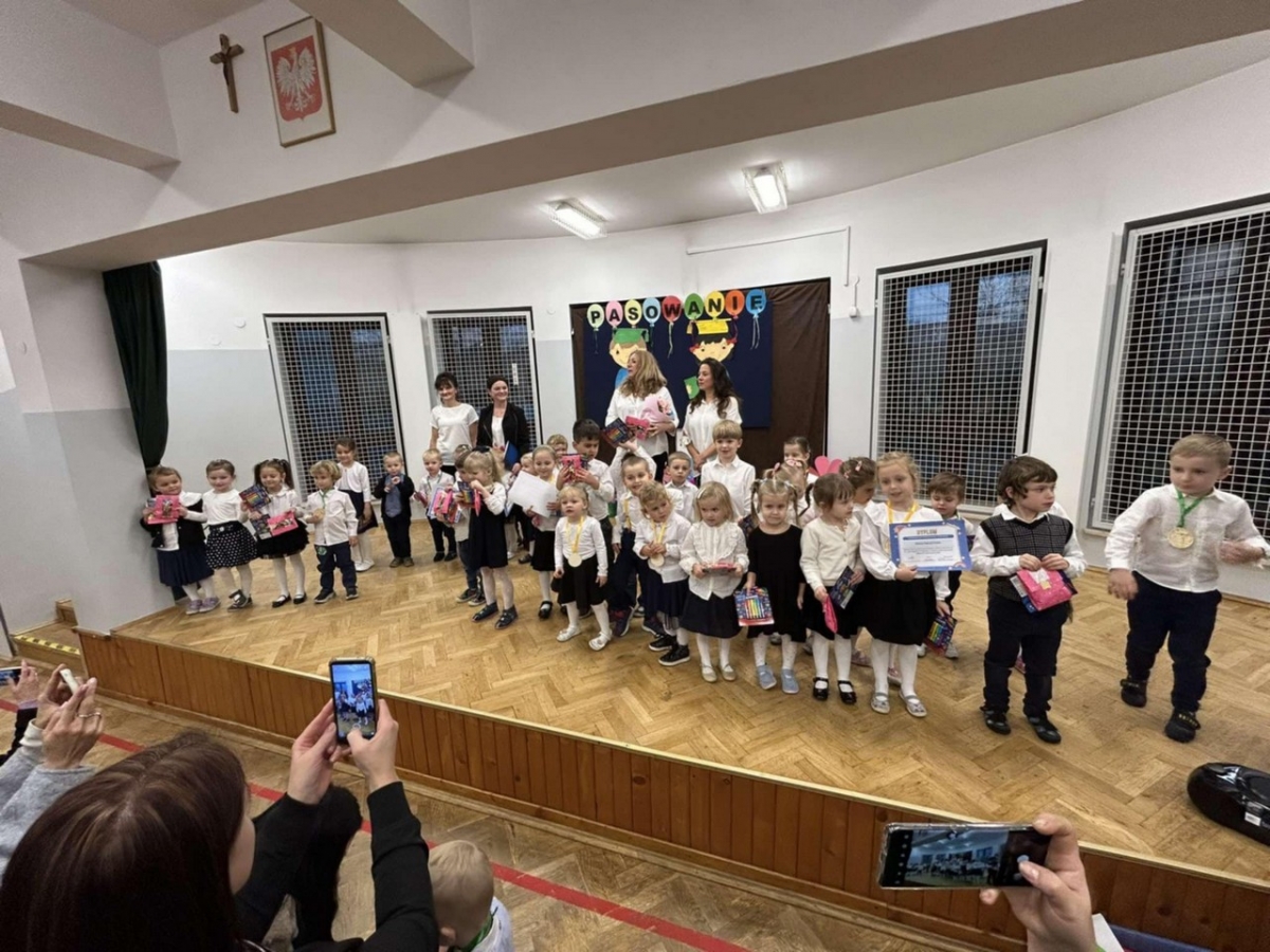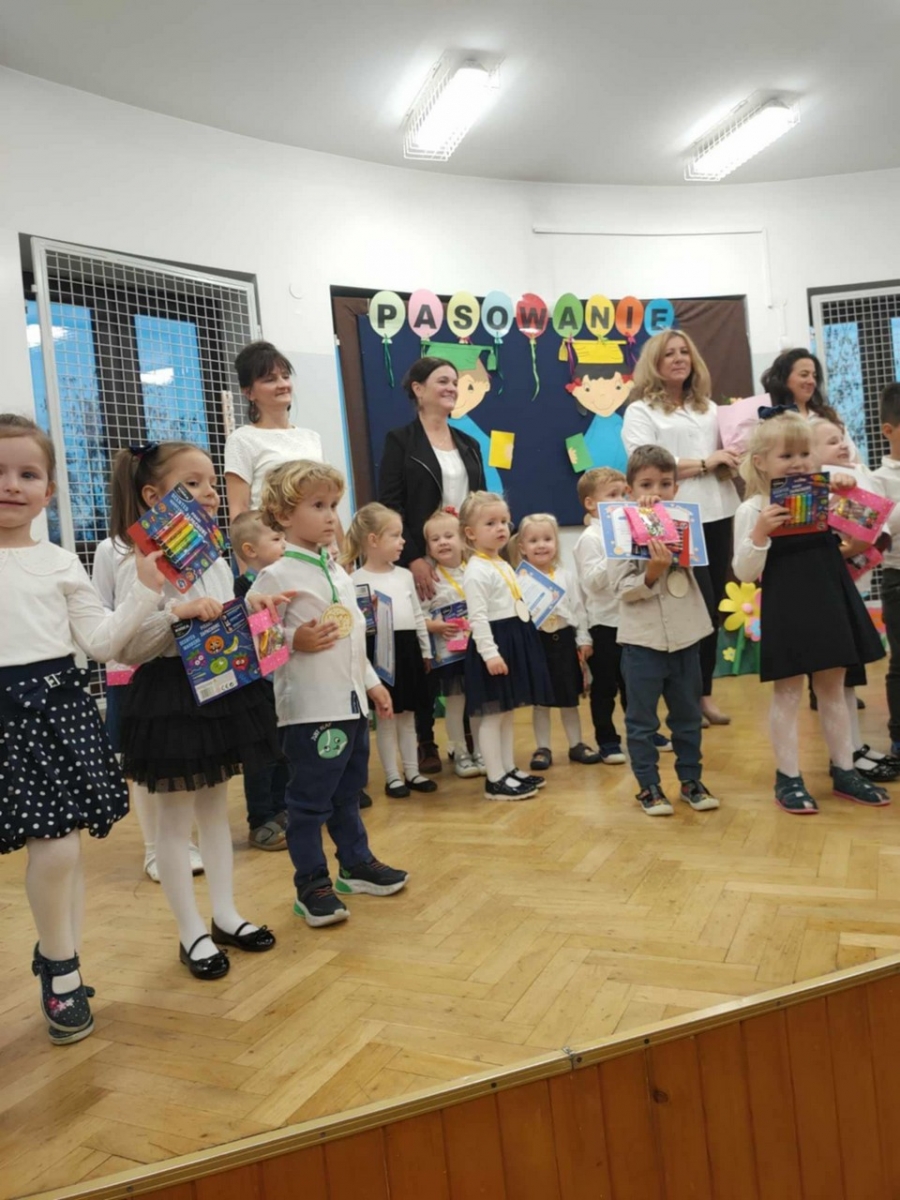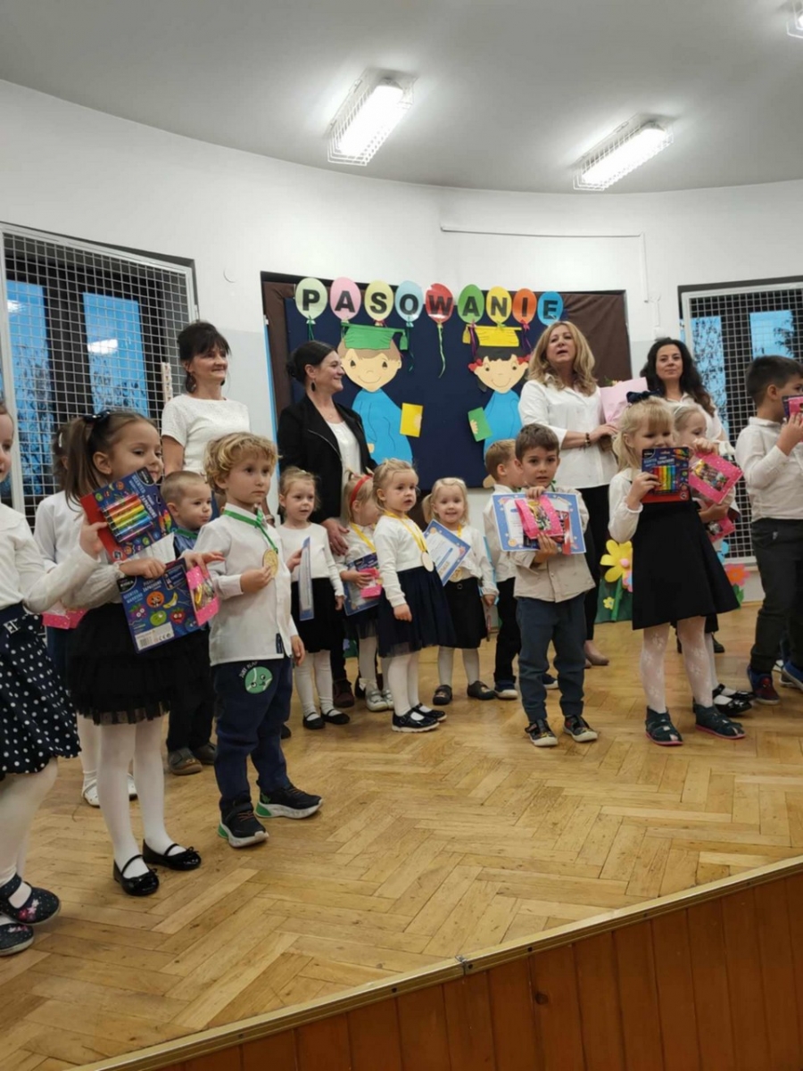 W dniu 05.11.2024 odbyła się Uroczystość Pasowania na przedszkolaka. Wśród zaproszonych gości była Pani Dyrektor, grono pedagogiczne oraz Rodzice. Wszystkie dzieci pięknie wystąpiły na scenie i usłyszały od widowni gromkie brawa. Pani Dyrektor uroczyście pasowała przedszkolaków i wręczyła im dyplomy oraz upominki. Na końcu odbyła się pamiątkowa sesja zdjeciowa.