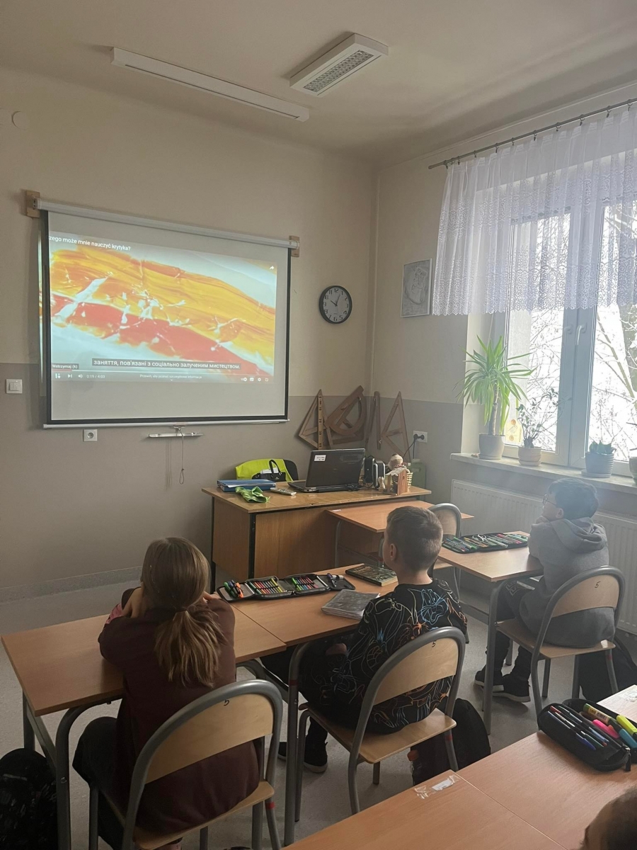 Spotkanie rozpoczęło się od obejrzenia filmu, w którym artystka Anna Drońska opowiada o roli krytyki w życiu artysty. Dzieci zrozumiały ogromną rolę konstruktywnej krytyki.