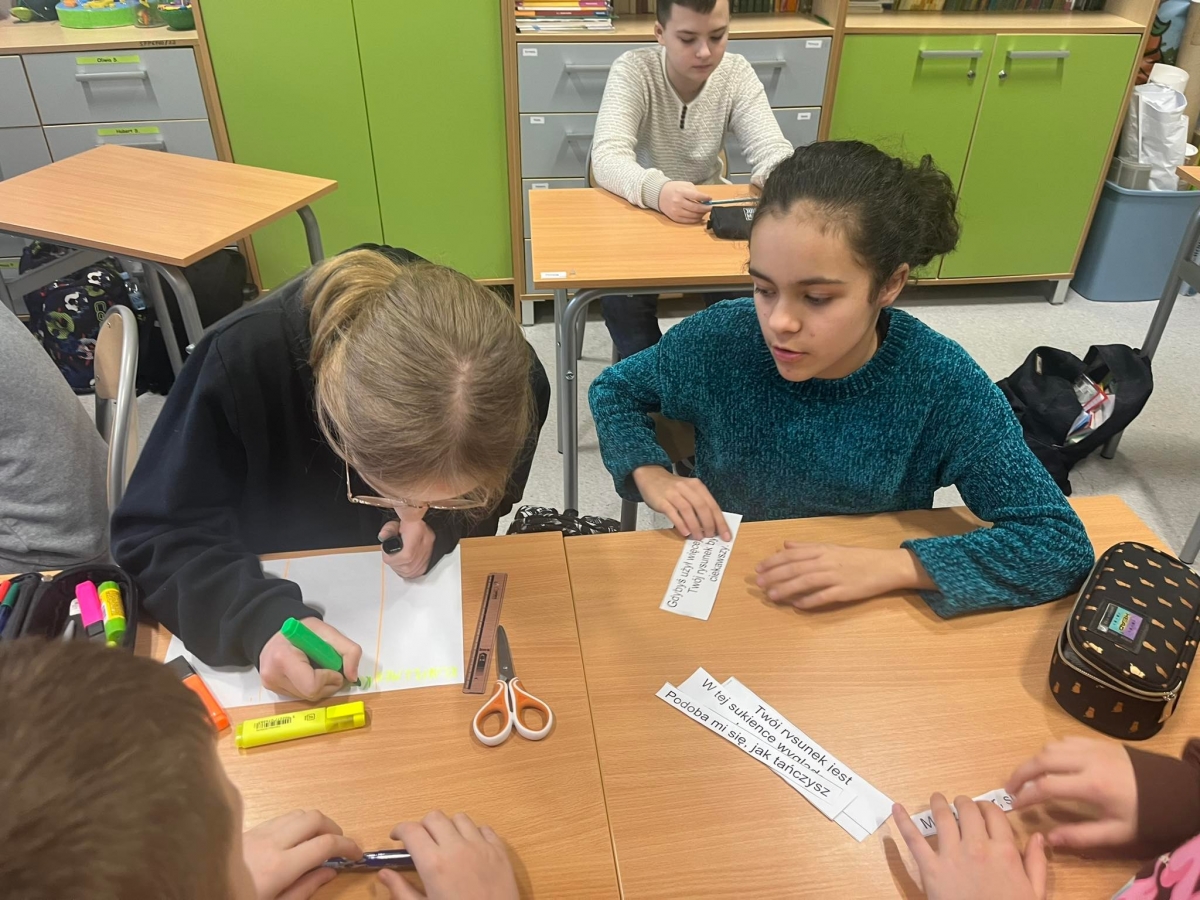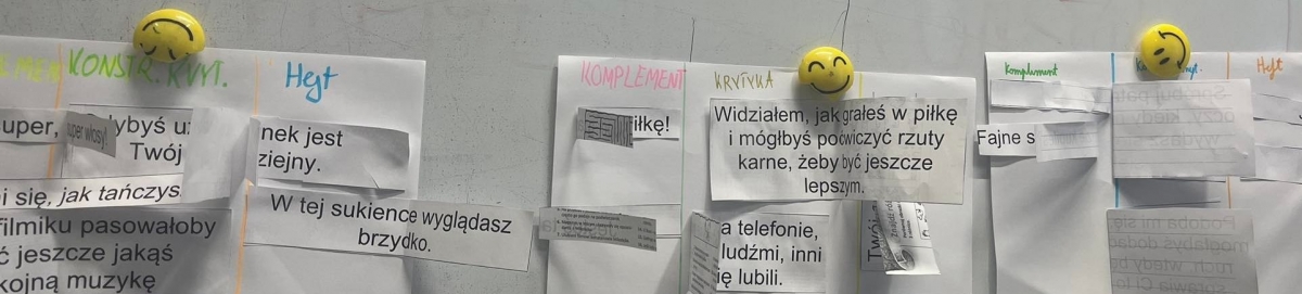 Po zastrzyku wiedzy teoretycznej przyszedł czas na praktykę – w czasie pracy grupowej dzieci, korzystając z materiałów przygotowanych przez Organizatora, starały się odróżnić krytykę od hejtu i komplementów, przypisując im emocje, jakie komunikaty wzbudzają u odbiorcy. Wszyscy świetnie poradzili sobie z tym zadaniem.
