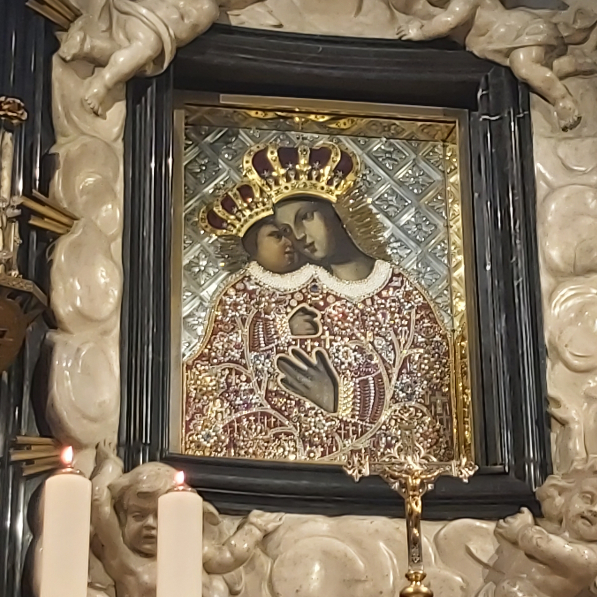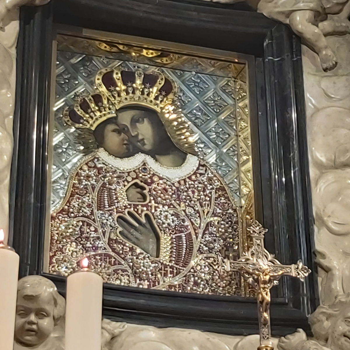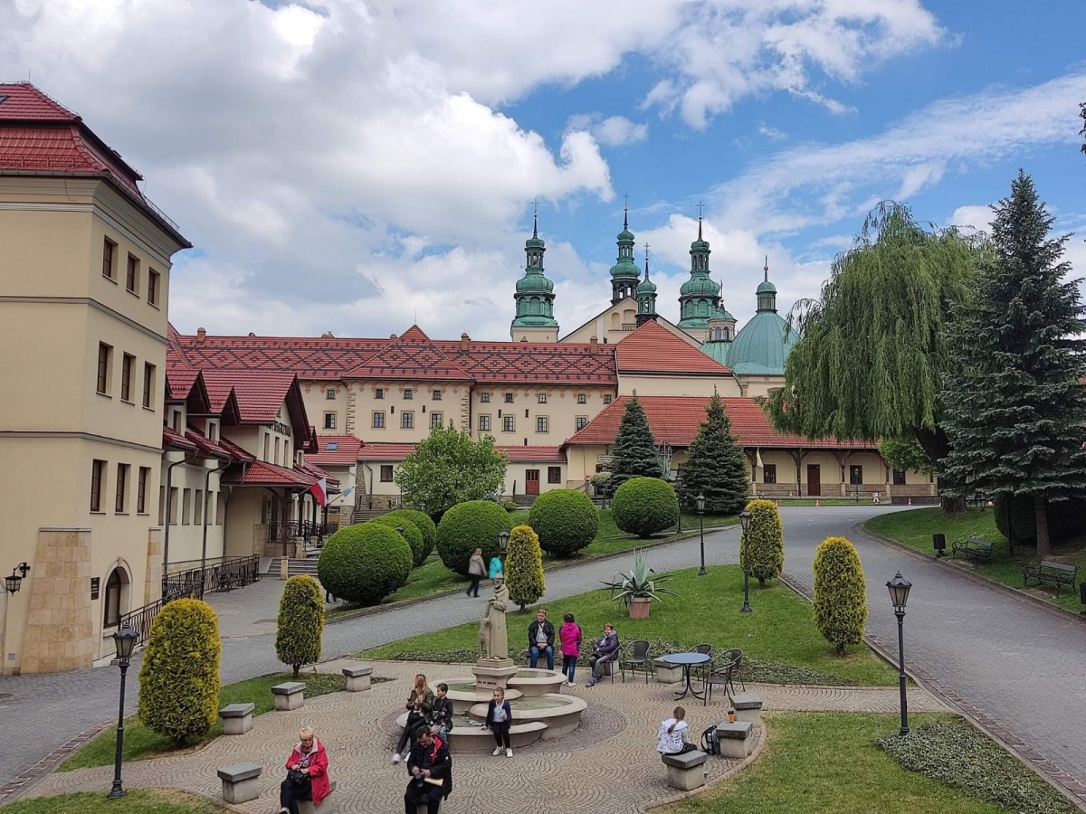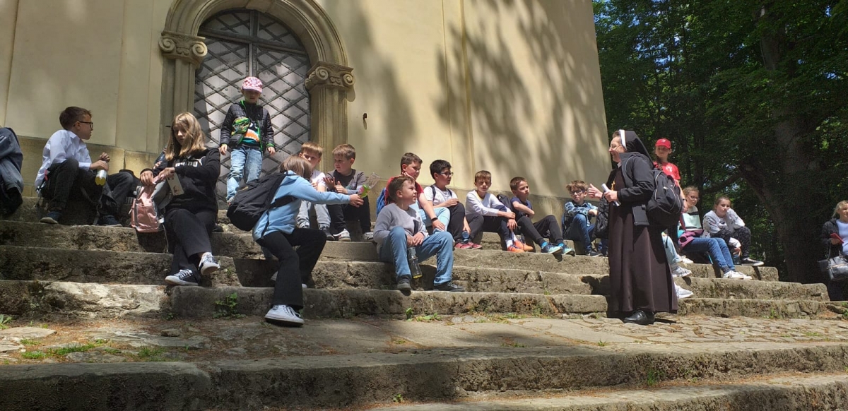 Kalwaria Zebrzydowska jest miejscem kultu Męki Pańskiej i kultu maryjnego. Kult Męki Pańskiej przejawia się w nabożeństwie dróżek Pana Jezusa i w obchodzie pasyjnym Wielkiego Tygodnia. Kult maryjny natomiast w nabożeństwie dróżkowym Matki Bożej, w Procesji pogrzebu i Triumfu Matki Bożej w sierpniu i w czci cudownego wizerunku Matki Bożej Kalwaryjskiej, który znajduje się tu od roku 1641. Opiekunami i stróżami sanktuarium, z woli pierwszego fundatora, Mikołaja Zebrzydowskiego są Bracia Mniejsi. W Polsce popularnie zwani bernardynami. Pierwsi bernardyni przybyli do Kalwarii w roku 1604, kiedy to rozpoczęto budowę kościoła i klasztoru. O godz. 08.20 wyruszyliśmy na naszą pielgrzymkę i już kilka minut po godz. 9 byliśmy na parkingu przed Sanktuarium. O godz. 10.00 uczestniczyliśmy we Mszy świętej, której przewodniczył i homilię wygłosił O. Tarsycjusz Bukowski ze Zgromadzenia Ojców Bernardynów. Uczniowie naszej Szkoły brali czynny udział w oprawie liturgicznej Mszy św. Jeden z rodziców odczytał Słowo Boże, cztery dziewczynki śpiewały psalm a inni przedstawili modlitwę wiernych. Po Mszy św. wszyscy udaliśmy się przed cudowny obraz Matki Bożej Kalwaryjskiej, aby Jej podziękować i prosić o opiekę oraz potrzebne łaski na drogę wierności Bogu. Po wyjściu z sanktuarium chwila przerwy na przygotowanie do pójścia dróżkami kalwaryjskimi. Wybraliśmy drogę Pana Jezusa idącego z krzyżem na Kalwarię. Przy każdej stacji Siostra Miriam powiedziała krótkie rozważanie a dzieci wyraziły intencje w których się modliliśmy. Po dotarciu na szczyt Kalwaryjski podziękowaliśmy wspólnie Bogu za dar zbawienia i prosiliśmy Go o błogosławieństwo i pomoc w dotarciu do nieba, które nam otworzył. Stromą drogą z góry dotarliśmy na Dziedziniec Sanktuarium, gdzie pielgrzymi mogli odpocząć, skorzystać z posiłków w Restauracji czy odwiedzić przyklasztorny sklepik z dewocjonaliami i pamiątkami. Ostatnim punktem naszej pielgrzymki była wspólna modlitwa koronką do Bożego Miłosierdzia o godzinie 15.00 w kaplicy Najświętszego Sakramentu.