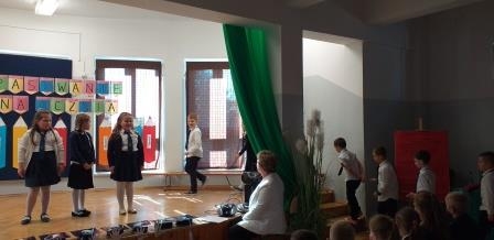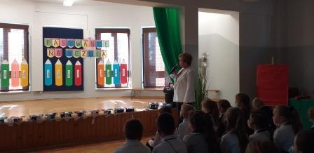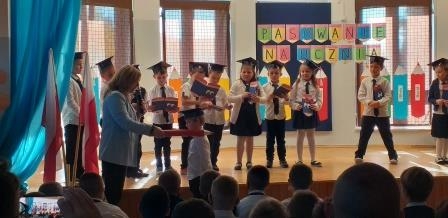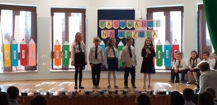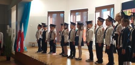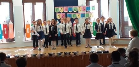 W wydarzeniu wzięli udział rodzice, nauczyciele oraz uczniowie z klas II i III. Uroczystość rozpoczęła wychowawczyni Anna Lelek, która powitała zaproszonych gości. Po powitaniu nadszedł czas na część artystyczną, na którą składały się wiersze, piosenki oraz zagadki dotyczące zasad zachowania w szkole. Pierwszaki przygotowały również piosenkę w języku angielskim, która udowodniła ich talenty językowe. Po prezentacji umiejętności i wiadomości pierwszoklasistów nastąpiło uroczyste pasowanie na ucznia poprzedzone wejściem pocztu sztandarowego i odśpiewaniem w postawie na baczność Hymnu Polski. Każdy uczeń klasy pierwszej podchodził do Pani Dyrektor, która kolorowym, wielkim ołówkiem pasowała każdego na ucznia szkoły. Dzieci były bardzo przejęte i dumne z tego, że mogą wreszcie być pełnoprawnymi członkami naszej społeczności. Na dowód tego wydarzenia otrzymały pamiątkowe dyplomy z rotą ślubowania. Po tej części akademii posypały się wspaniałe prezenty dla pierwszaków. Z niespodzianką przybył SU, starsi koledzy oraz Rodzice. Uroczystość zakończyła się pamiątkowym zdjęciem oraz słodkim poczęstunkiem dla najmłodszych.