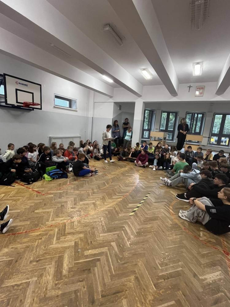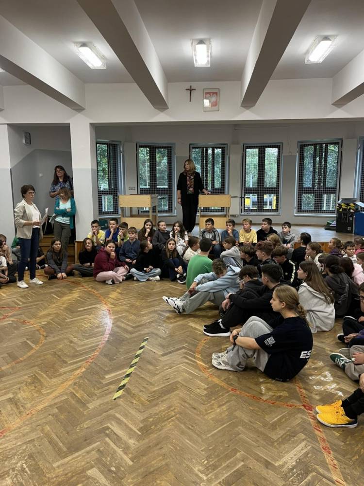 We wrześniu, po uroczystym rozpoczęciu roku szkolnego, rzuciliśmy się w wir pracy. Na sali gimnastycznej spotkała się cała społeczność szkolna, by poznać plany na miesiąc wrzesień.