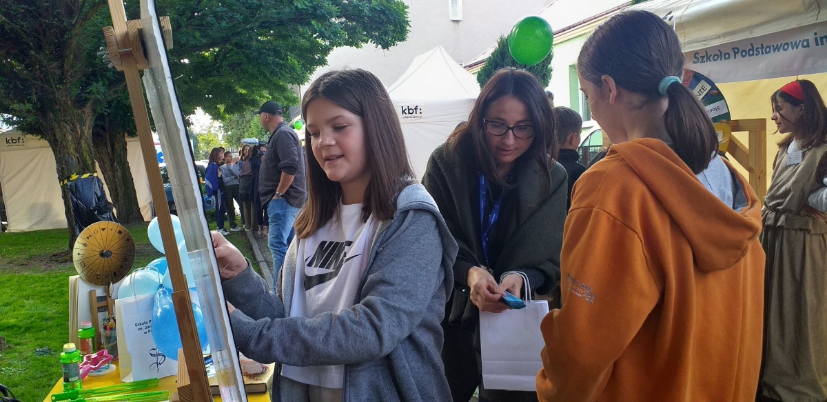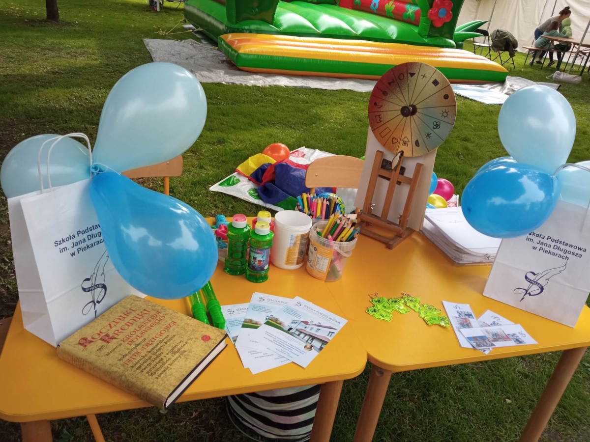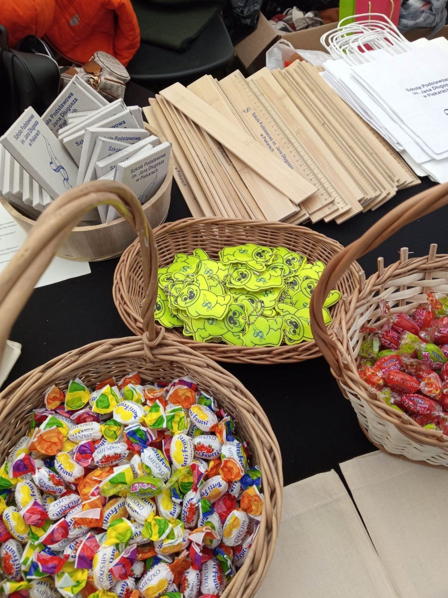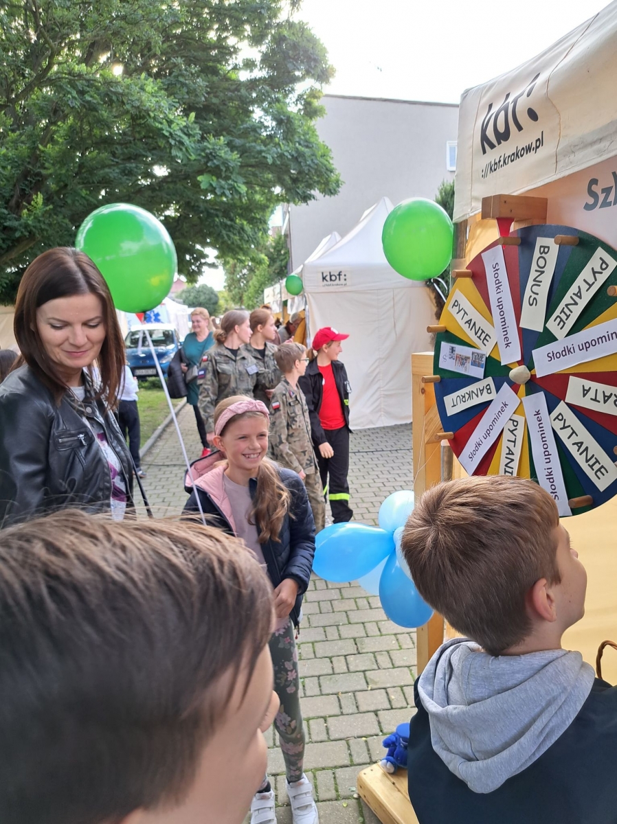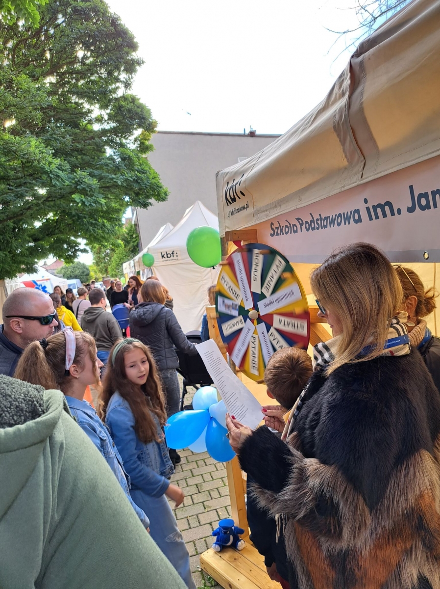 W czasie całego festynu wolontariusze z naszej szkoły otaczali opieką wszystkich odwiedzających nasze stoisko, gdzie już tradycyjnie było wyeksponowane koło fortuny, które podobnie jak gadżety z logo szkoły, cieszyło się dużą popularnością. Każdy mógł spróbować szczęścia i wylosować słodki upominek lub linijkę czy kredki ozdobione logo. Nawet przy kaprysach losu bankrut też nie odchodził z pustymi rękami, każdy otrzymywał małe, słodkie pocieszenie.