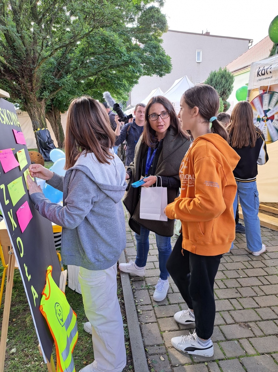 Piknik Lisiecki był także świetną okazją do realizacji zadań konkursowych „Odblaskowa Szkoła”. W czasie festynu na naszym stanowisku promowane były zasady bezpieczeństwa ruchu drogowego. Odwiedzający tworzyli hasła o bezpieczeństwie, a dzieci mogły wygrać odblaski. Wszystkie te działania podjęte były zgodnie z celem konkursu, że szkoła nie tylko uczy, ale również dba o bezpieczeństwo swoich podopiecznych, zwłaszcza w drodze do i ze szkoły. Z pewnością wszyscy, ci duzi i mali użytkownicy dróg uświadomili sobie ogromną rolę elementów odblaskowych w ograniczeniu zagrożeń w ruchu drogowym.
