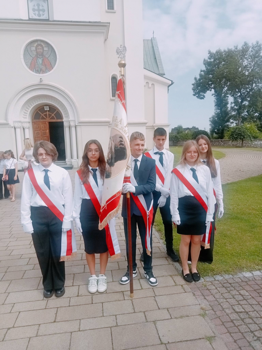 Jak co roku nasz poczet sztandarowy uczestniczył we mszy św. kończącej rok szkolny 2023/24.