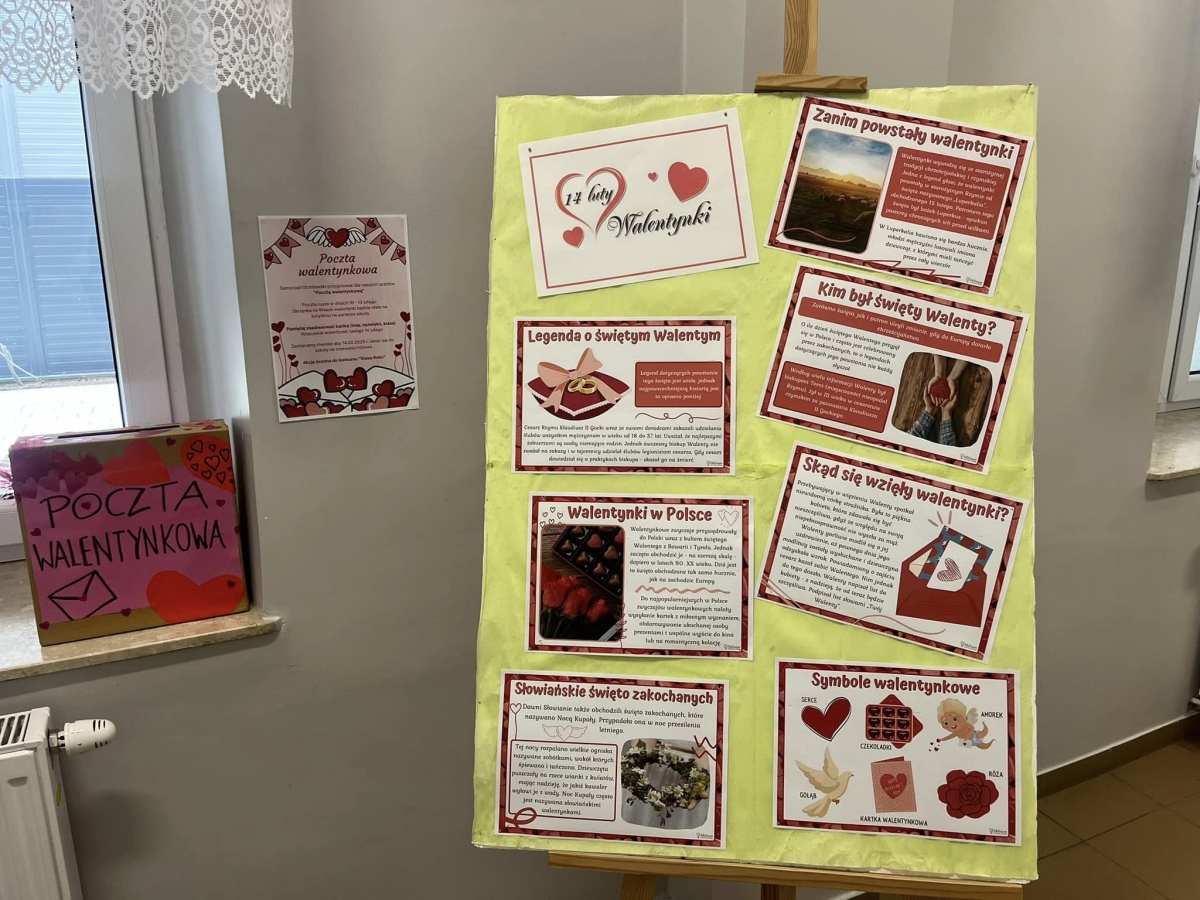 14 lutego obchodzimy walentynki. Jest to wyjątkowy dzień - czas okazywania, wyrażania miłości, sympatii, przyjaźni, jak i życzliwości. W naszej szkole nie zapomniano o tym święcie. Z tej okazji Samorząd Uczniowski zorganizował pocztę walentynkową. Każdy mógł wrzucić swoją walentynkę do przygotowanego pudełka. Poczta cieszyła się ogromnym zainteresowaniem, pudełko zapełniło się po brzegi. Walentynkowe kartki, serduszka i liściki sprawiły wszystkim wiele radości. Bądźmy dla siebie mili, życzliwi każdego dnia, nie tylko od święta.