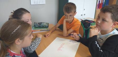 Dzieci młodsze z kolei rysowały godło Polski, zastanawiały się, kim jest bohater. Starsi, rozmawiając o bohaterstwie Powstańców, zastanawiali się, jakie cechy powinien posiadać bohater.