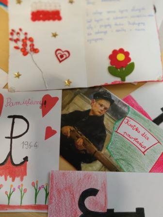 W tej edycji akcji redagowanie pocztówki dla Powstańców było dodatkową formą pracy. Nasi uczniowie bardzo chętnie podjęli się tego zadania i przygotowali, od najmłodszych przedszkolaków po najstarszych uczniów, piękne kartki, w których dziękowali Powstańcom za ofiarną walkę w obronie stolicy. Pocztówki zostały wysłane na adres fundacji, która przekaże je honorowym odbiorcom.