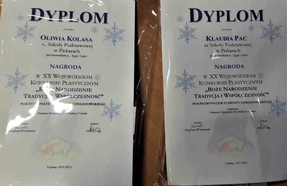 Z wielką radością przekazujemy dobre wiadomości o kolejnych sukcesach plastycznych naszych uczniów. W grudniu grupka młodych artystów wykonała prace plastyczne na Wojewódzki Konkurs Plastyczny – Boże Narodzenie, tradycja i współczesność. Temat bardzo przyjemny i dający wiele możliwości przedstawienia tradycji świątecznych we współczesnym świecie. Dawał on również szerokie możliwości doboru techniki plastycznej.