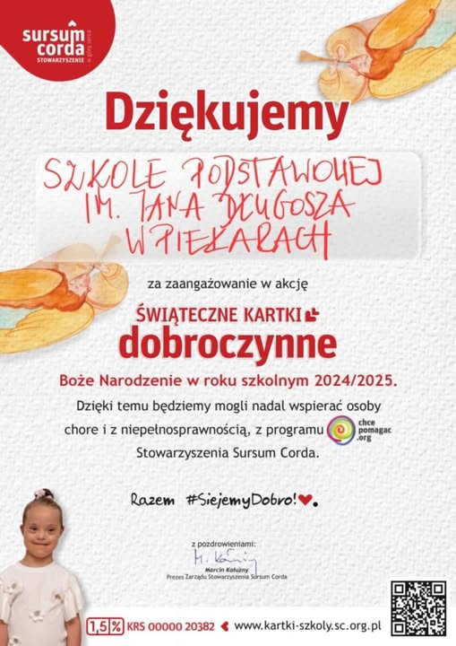 Szkoła Podstawowa im. Jana Długosza w Piekarach wzięła udział w kampanii charytatywnej "Świąteczne Kartki Dobroczynne".