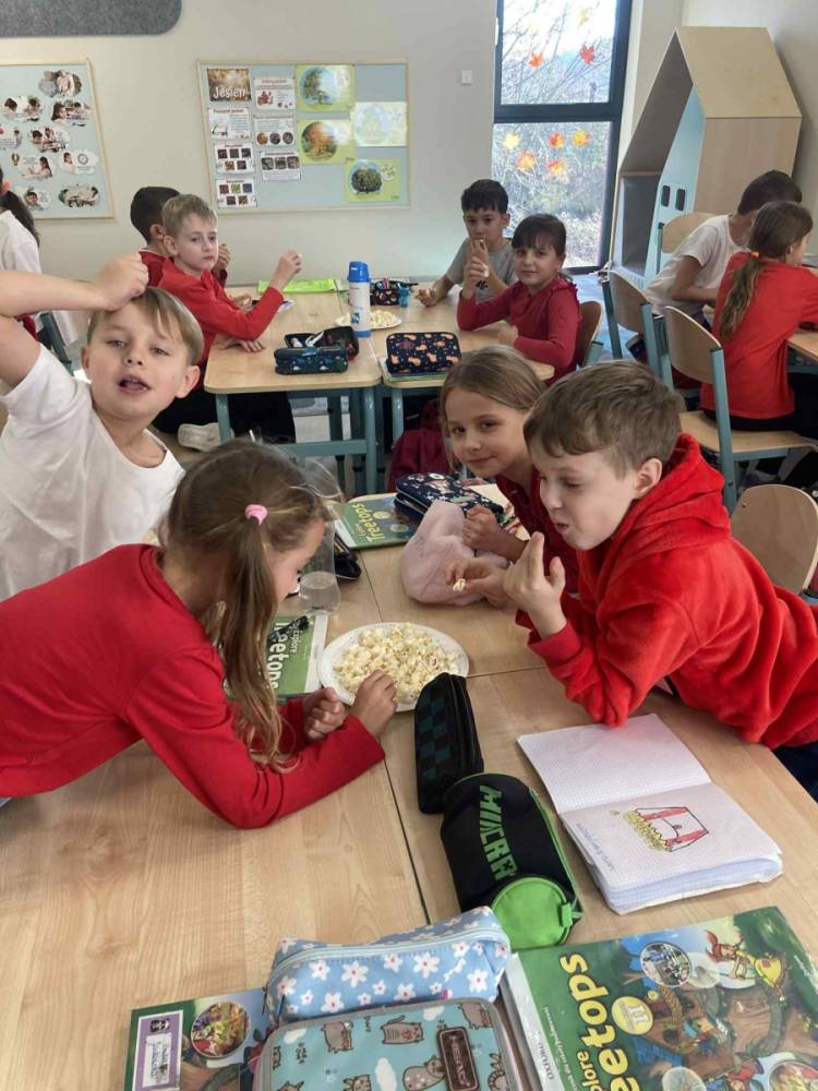 Podczas lekcji języka angielskiego uczniowie klasy II skupili się dziś na popcornie.