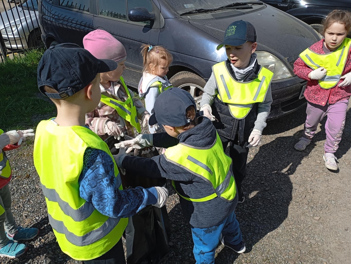 Każda klasa, oddziały przedszkolne oraz nauczyciele, z dużym entuzjazmem przystąpili do sprzątania wyznaczonego terenu w naszej pięknej miejscowości.