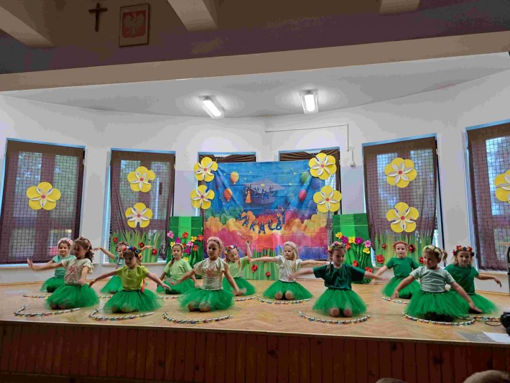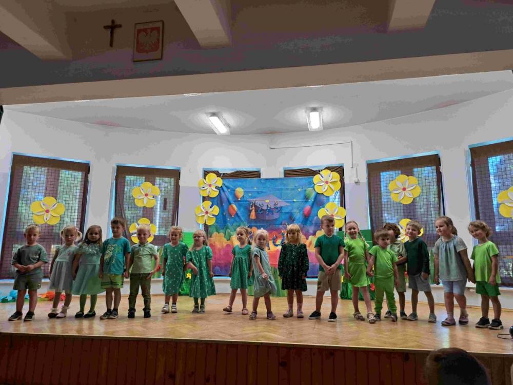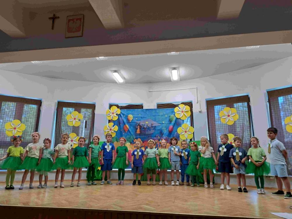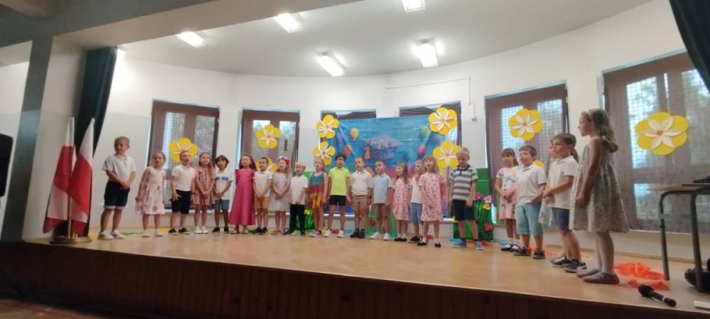 Czas szybko mija, wszystko co dobre szybko się kończy. Kończy się również rok przedszkolny. 24 czerwca przedszkolaki i ich Rodzice oraz zaproszeni Goście zgromadzili się w sali gimnastycznej naszej szkoły, aby uroczyście zakończyć rok przedszkolny. Po przywitaniu zebranych nastąpiła część artystyczna, podczas której dzieci z poszczególnych grup prezentowały swoje umiejętności wokalne, taneczne i artystyczne. Następnie nadszedł czas na podziękowania dla Pani Dyrektor, Nauczycieli, Pracowników i Rodziców. Nie mogło zabraknąć także dyplomów i nagród dla Bohaterów tego wydarzenia – naszych Przedszkolaków.