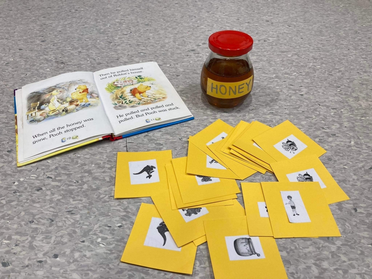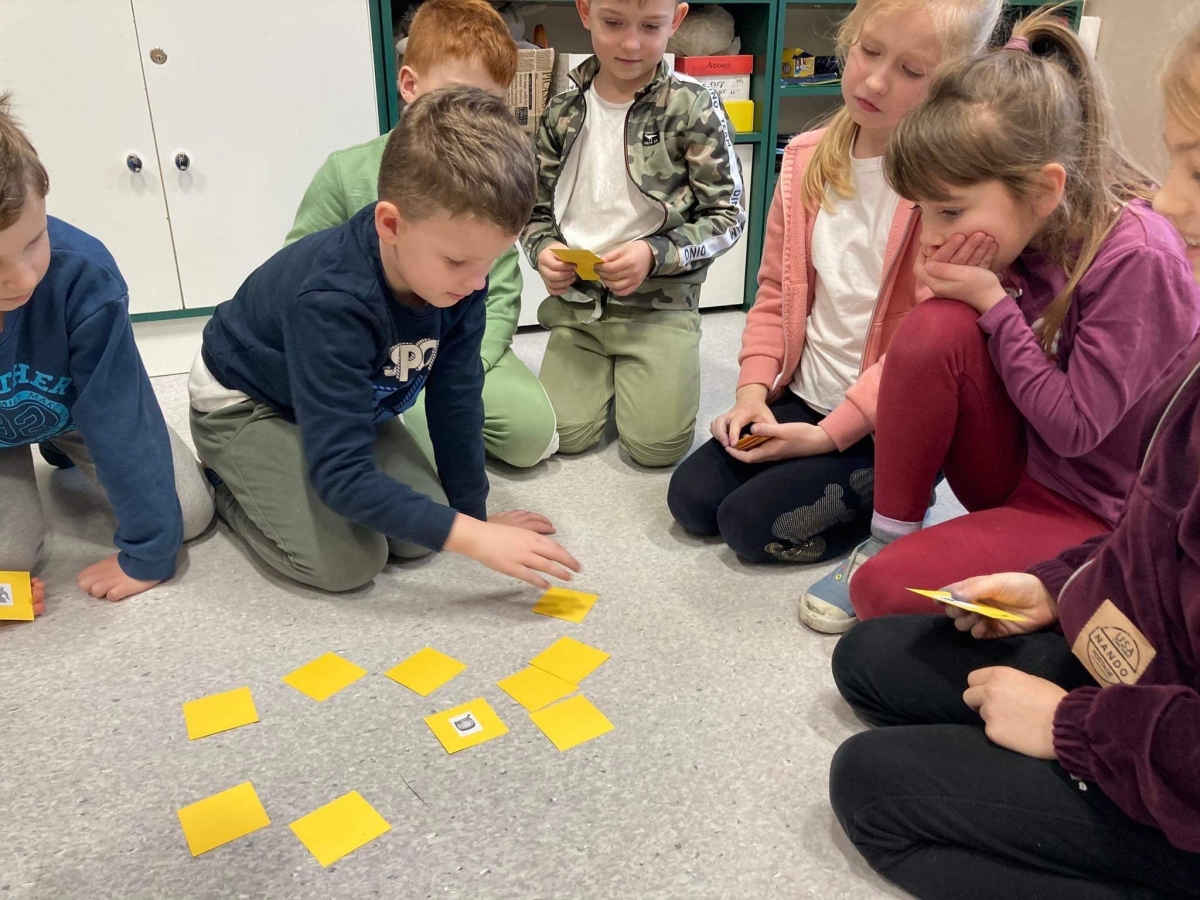 Tym razem zajęcia dotyczyły Kubusia Puchatka i jego przyjaciół. Dzieci wysłuchały jednej z ich przygód i zagrały w memory, utrwalając i poszerzając swój zasób słownictwa.
