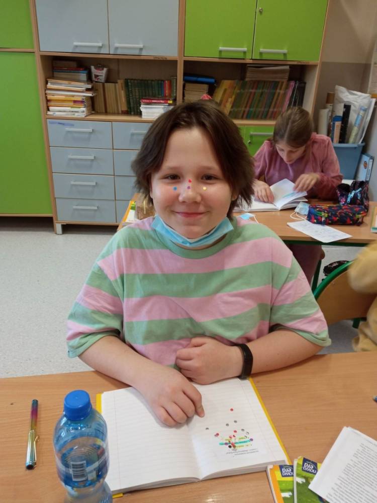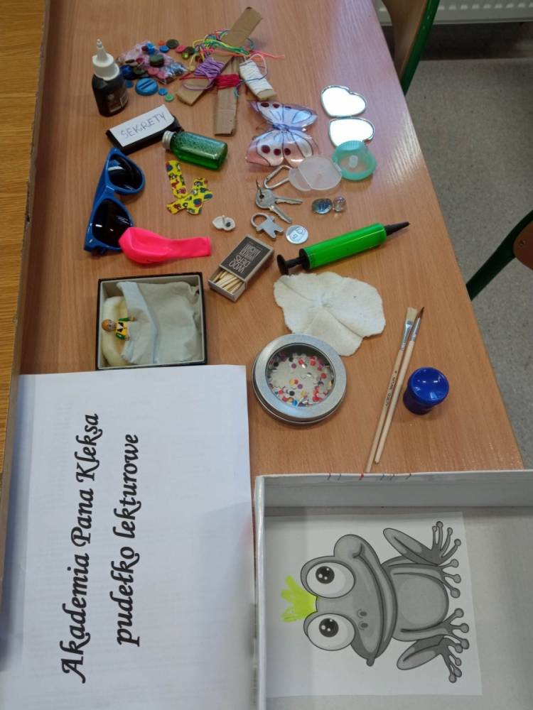 Wiele jest sposobów na omawianie z uczniami lektury. Jednym z nich może być projekt LEKTURA W PUDEŁKU, czyli zmieszczenie treści książki w pudełku po butach. Uczniowie klasy IV zobaczyli w pudełku „skarby” łączące się z treścią lektury, nad którą pracowali i w ten nietypowy sposób podsumowali pracę z książką „Akademia Pana Kleksa". Dzieci nawet nie odczuły, że to był właśnie poważny test wiedzy z lekcji. Każde dziecko musiało omówić wylosowany element z pudełka i wyjaśnić, jak związany jest on z treścią książki. Uczniowie musieli w ten sposób przybliżyć koleżankom i kolegom wydarzenia związane z wyciągniętym detalem. Po wysłuchaniu opowieści każdy uczeń w formie graficznej informacji zwrotnej otrzymał wiadomość od nauczyciela, jak sobie poradził z tym trudnym zadaniem.