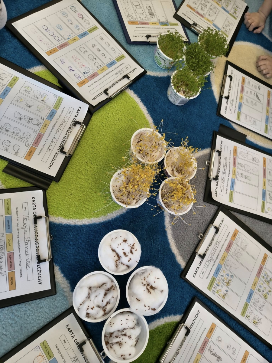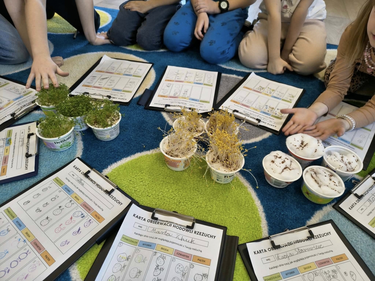 Klasa 1A zakończyła projekt przyrodniczy, podczas którego badali wpływ wody i słońca na życie rośliny. Obserwacje trwały dwa tygodnie, a uczniowie codziennie notowali swoje spostrzeżenia. Projekt pobudził uczniów do naukowego myślenia, zachęcił do zadawania pytań badawczych oraz wzbogacił ich o cenną wiedzę przyrodniczą przydatną w życiu codziennym.