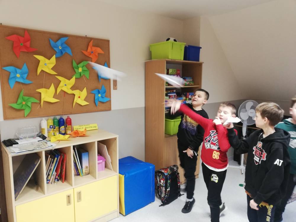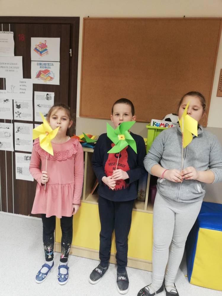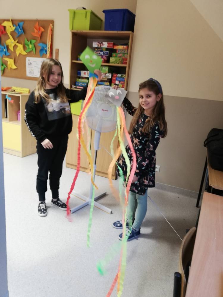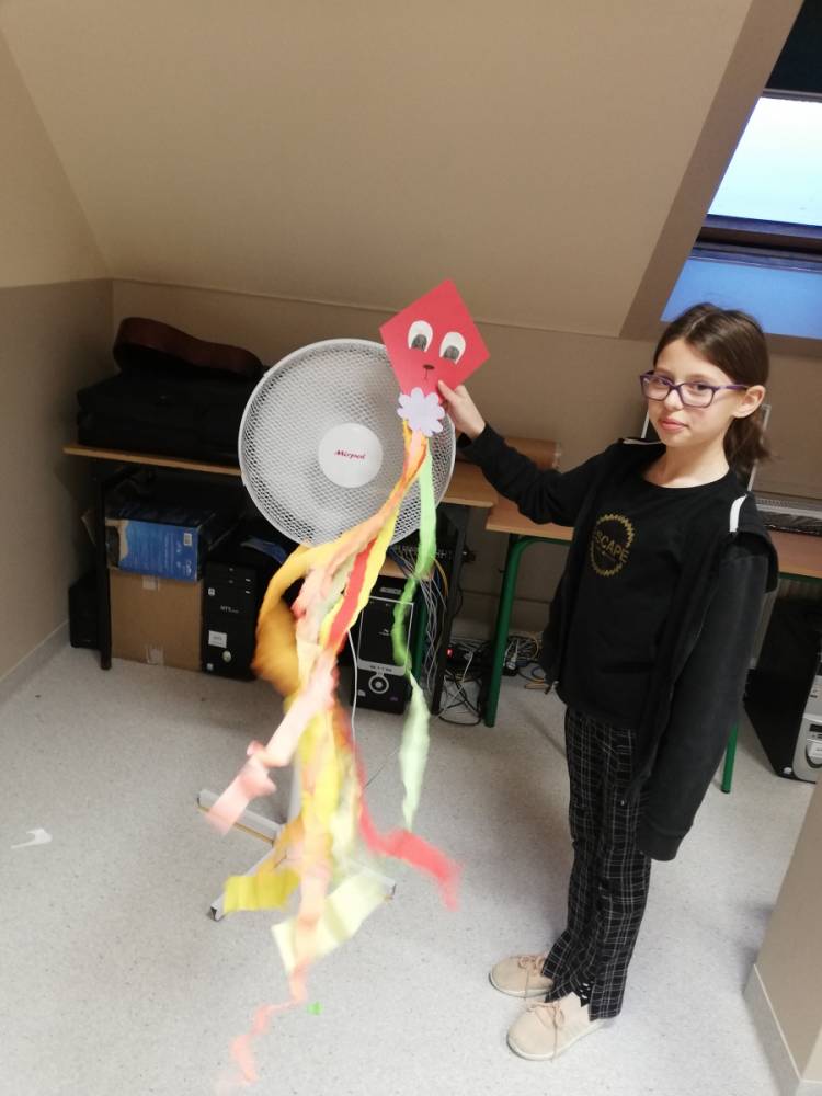 Podopieczni świetlicy szkolnej poznali ciekawostki związane z wiatrem, opowiadali w jaki sposób prowadzi się obserwacje wiatru, a także wykonali wiele prac technicznych: latawce, szybowce oraz wiatraki.