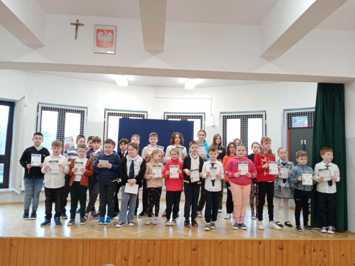 Nagrodzeni uczniowie będą reprezentować naszą szkołę w Gminnym Konkursie Recytatorskim, który odbędzie się 1 marca w Szkole Podstawowej w Kryspinowie.