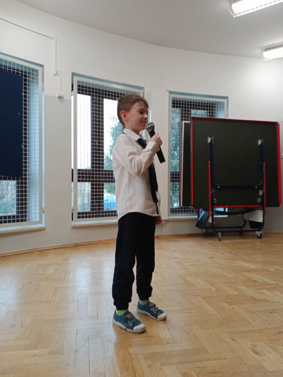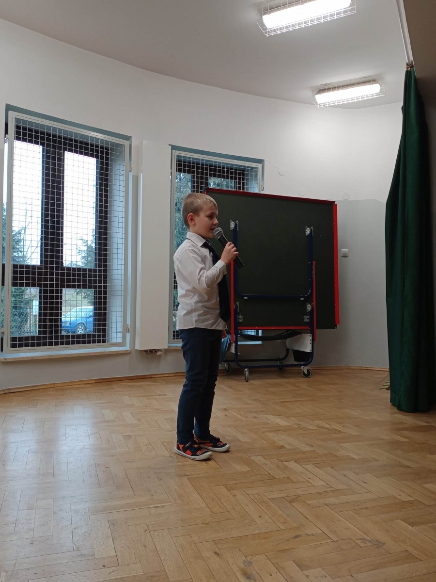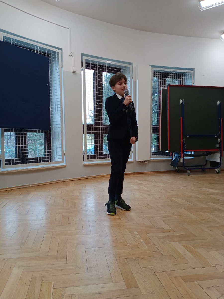 W Szkolnym Konkursie Recytatorskim wzięło udział 17 uczestników z klas I - VIII. Dla wielu wykonawców występ przed szerszą publicznością był ogromnym przeżyciem, sztuką opanowania emocji i tremy.