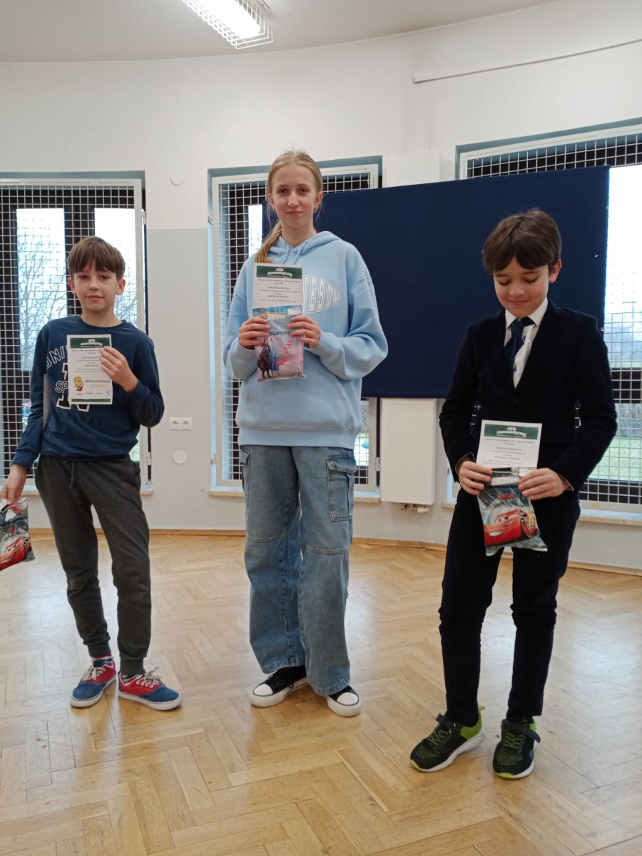 w kategorii klas IV – VI nagrodzony został Andrzej Suchan z kl. IV,