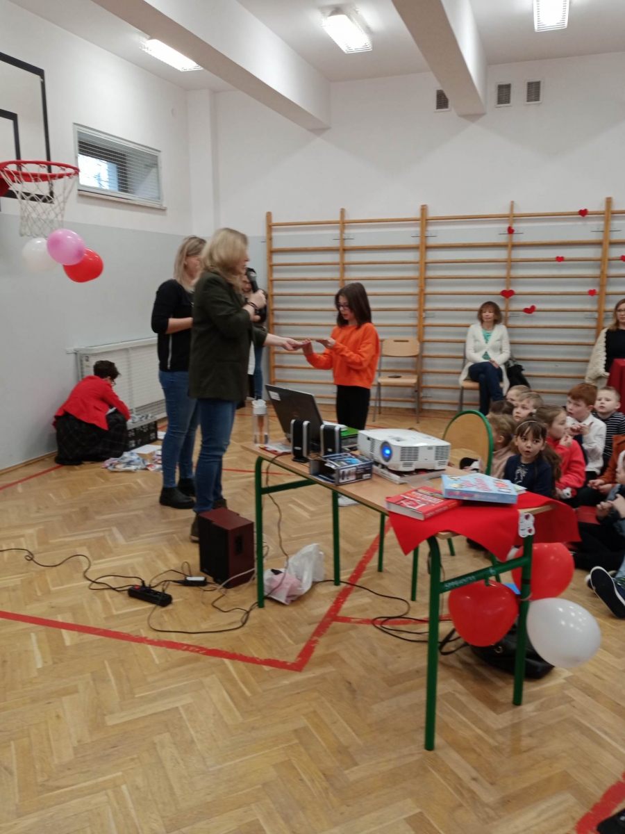 W czasie walentynkowego spotkania nastąpiło też uroczyste rozdanie nagród w konkursach: polonistycznych, matematycznych, języka angielskiego, przyrodniczych, biologicznych i chemicznych.