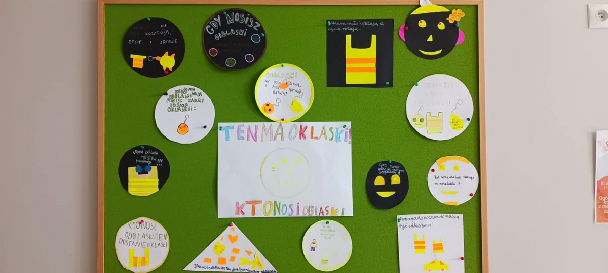 W ramach Ogólnopolskiego Konkursu Odblaskowa Szkoła uczniowie klasy trzeciej na lekcji edukacji plastycznej projektowali i wykonali znaczki promujące bezpieczeństwo na drodze i zachęcające jednocześnie do noszenia odblasków.