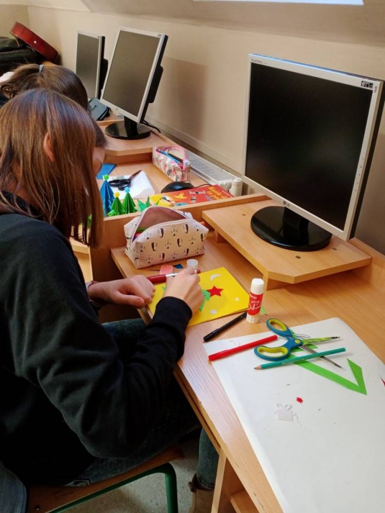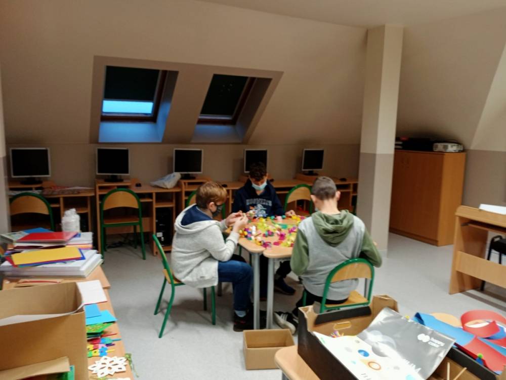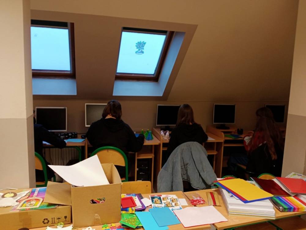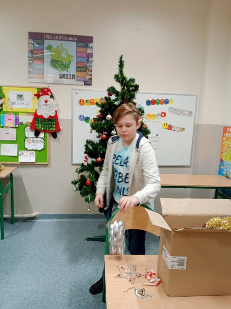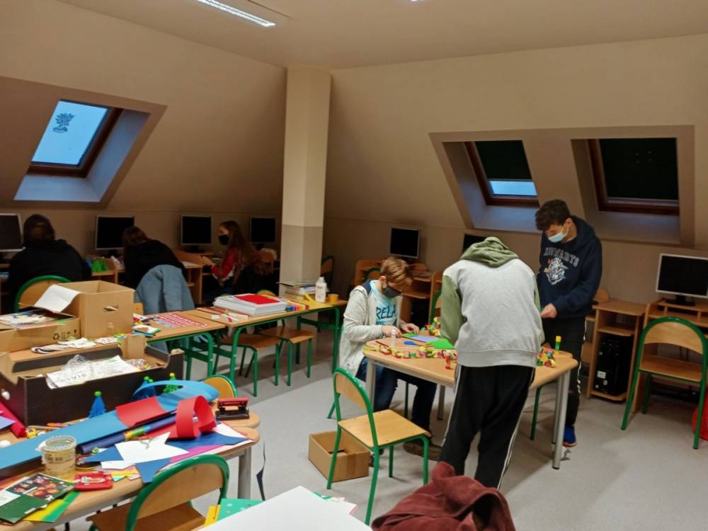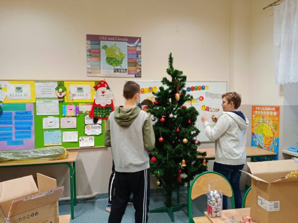 W piątek 11 grudnia 2020r. przedstawiciele samorządu uczniowskiego i koła wolontariatu włączyli się w przedświąteczne przygotowania. Ubierali choinkę szkolną oraz pomagali w przygotowaniu kartek świątecznych, które zostaną wysłane do emerytowanych nauczycieli naszej szkoły oraz przedstawicieli lokalnych władz i darczyńców.