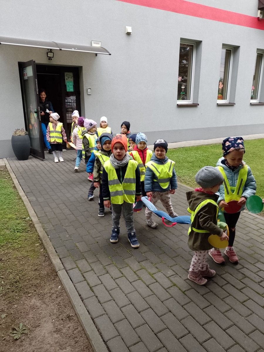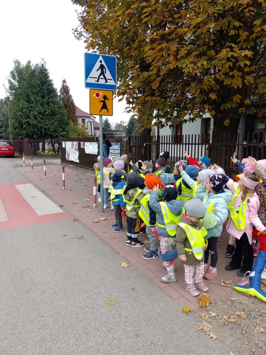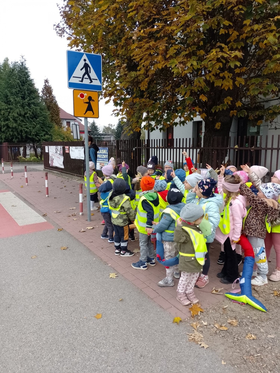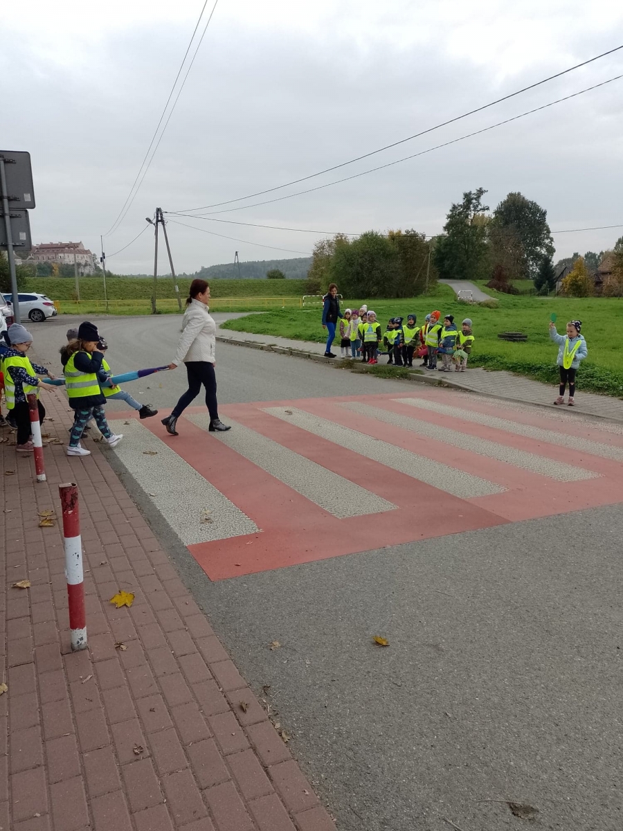 Dzieci ćwiczyły zasady poruszania się i przechodzenia przez jezdnię w ramach spacerów.