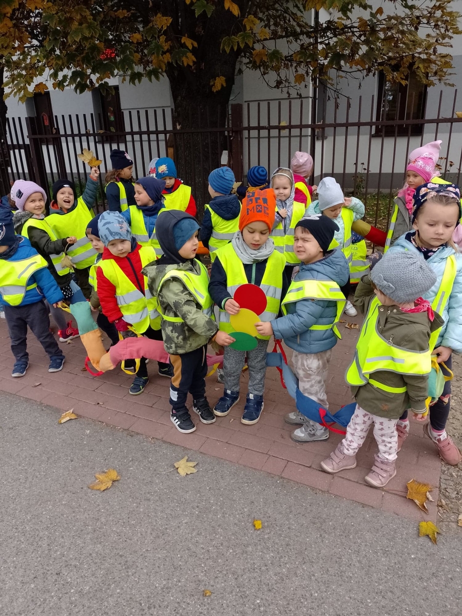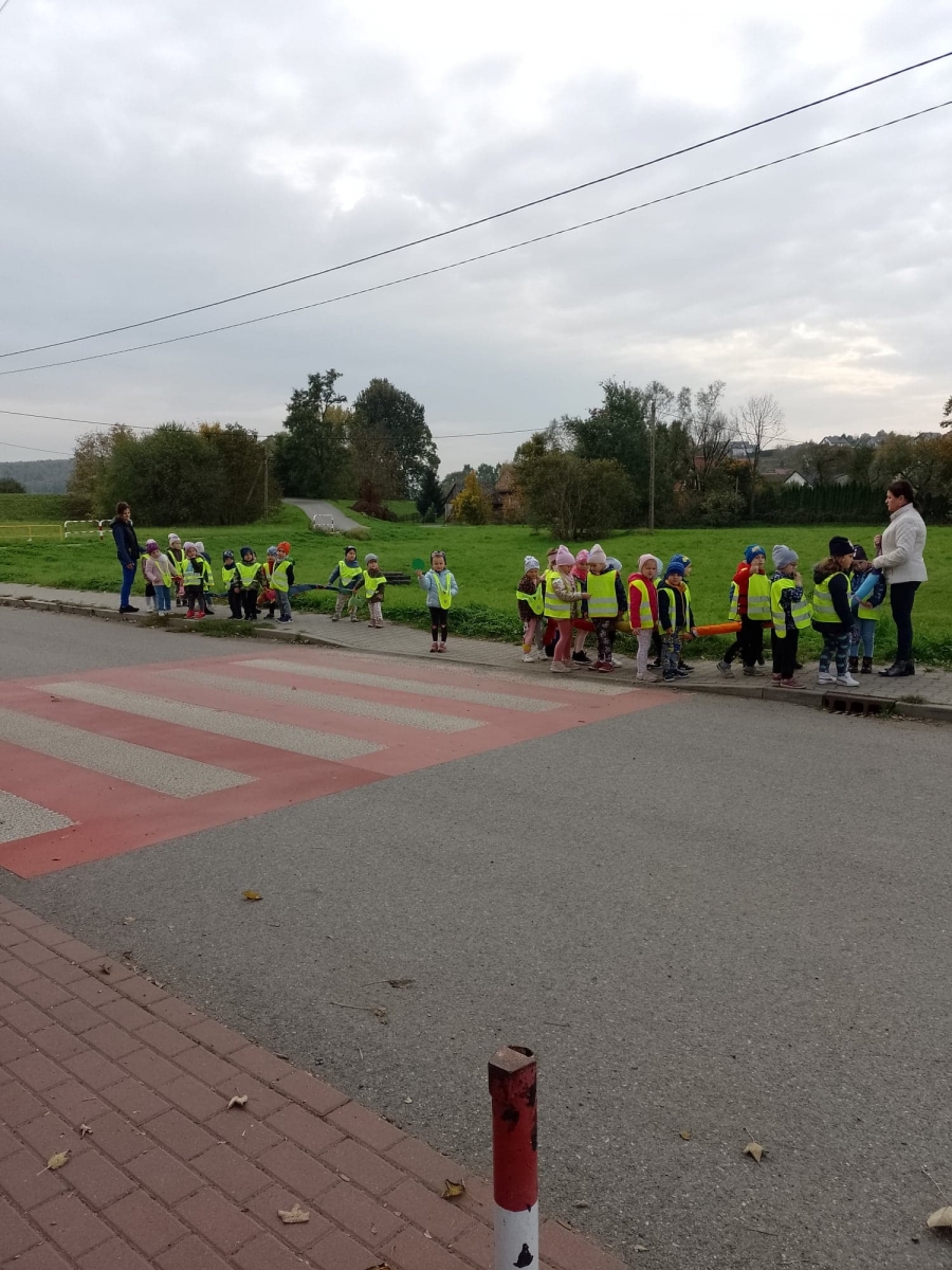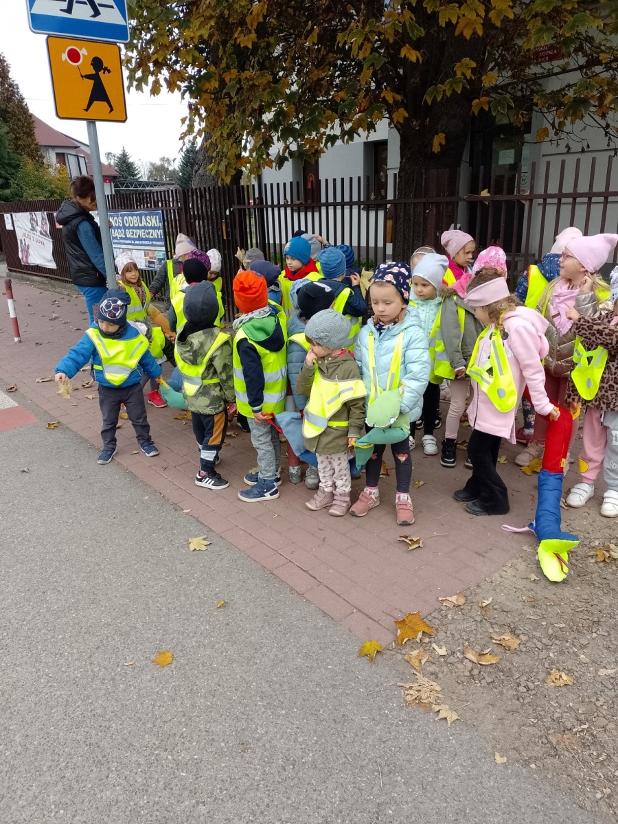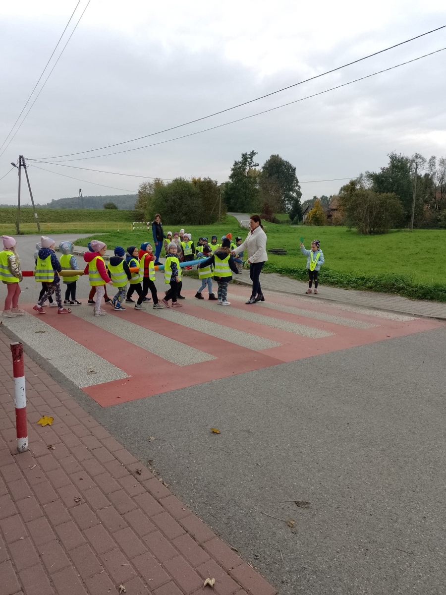 Dzieci ćwiczyły zasady poruszania się i przechodzenia przez jezdnię w ramach spacerów.