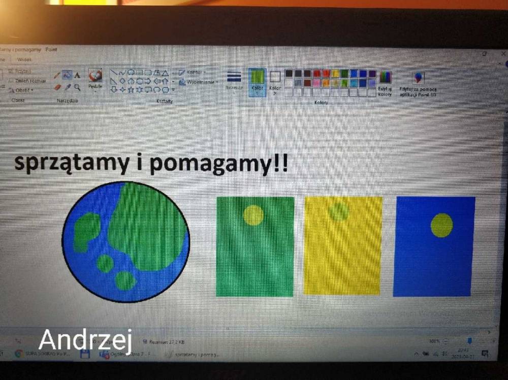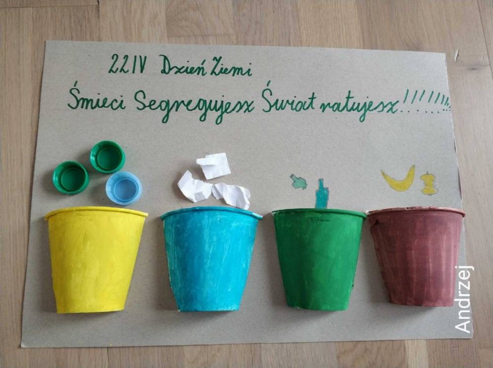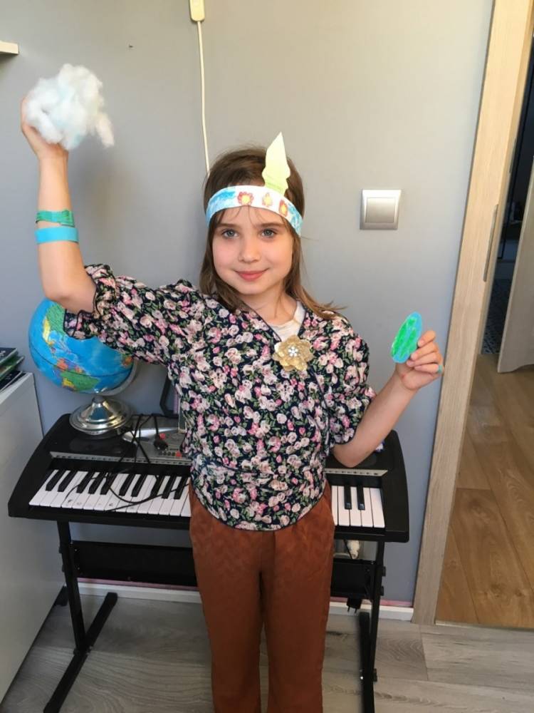 Przez dwa tygodnie kwietnia klasa druga realizowała na zajęciach on – line temat: „Szanujemy nasze otoczenie i o nie dbamy”. Uczniowie poznawali sposoby ochrony środowiska i zjawiska, które zagrażają bezpieczeństwu naszej planety. Podczas spotkania z tatą Julii – panem Pawłem Mazurem – uczniowie mieli okazję poszerzyć swoją wiedzę na temat pracy strażaka. W trakcie zajęć edukacyjnych wszyscy z zaangażowaniem podejmowali zadania dotyczące realizowanego tematu: układali hasła promujące ochronę środowiska, wykonywali piękne prace z wykorzystaniem różnych odpadów, a także przygotowali okolicznościowe stroje z okazji Dnia Ziemi.