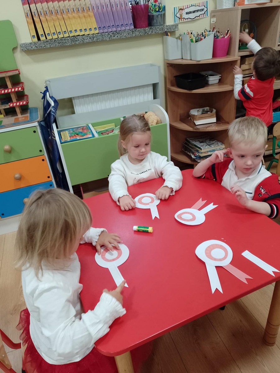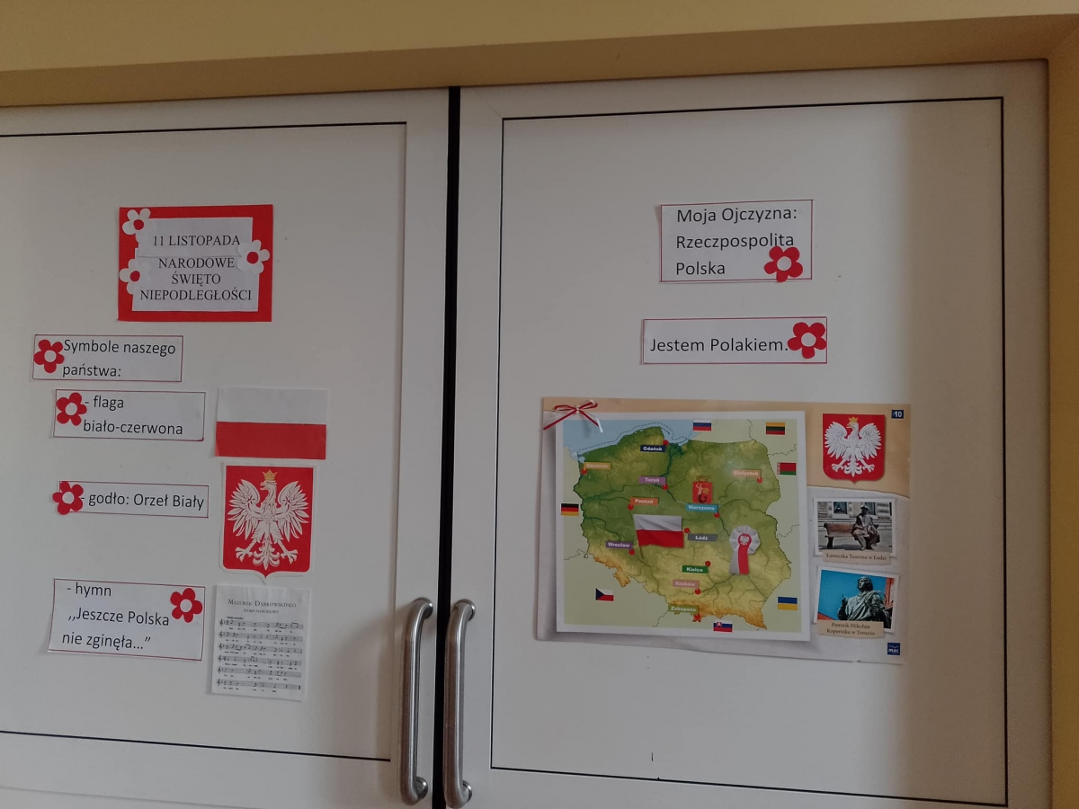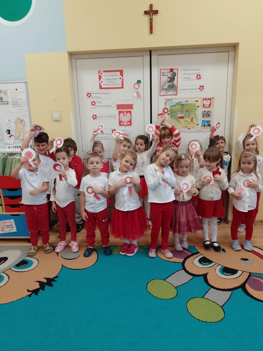 8 listopada to dzień podsumowujacy patriotyczmy tydzień w naszym przedszkolu. Odświętnie ubrane ,,Pszczółki'' i ,,Tygryski'' zaśpiewały Hymn Polski, wykonały kotyliony oraz popisały się wiedzą na temat historii naszej Ojczyzny.