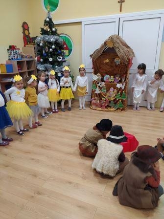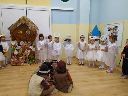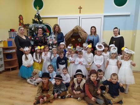 - dzieci z oddziałów przedszkolnych wykonały także piękne upominki dla swoich bliskich i przygotowały występ jasełkowy, który uroczyście zaprezentowały. Występ został uwieczniony na zdjęciach i filmie https://www.youtube.com/watch?v=7-84lVBPb5Q&feature=youtu.be&fbclid=IwAR0FyrQcRMk-5XJbYVsom6zZy1oKot3xv8zGYT9rqvB2fsR0sirSvJs_XG8. Zapewne będzie znakomitym podarunkiem przy świątecznym, wigilijnym stole. W dniu występów specjalnym Gościem zaproszonym przez dzieci i wychowawców była Pani Dyrektor, która również otrzymała od dzieci świąteczny upominek,