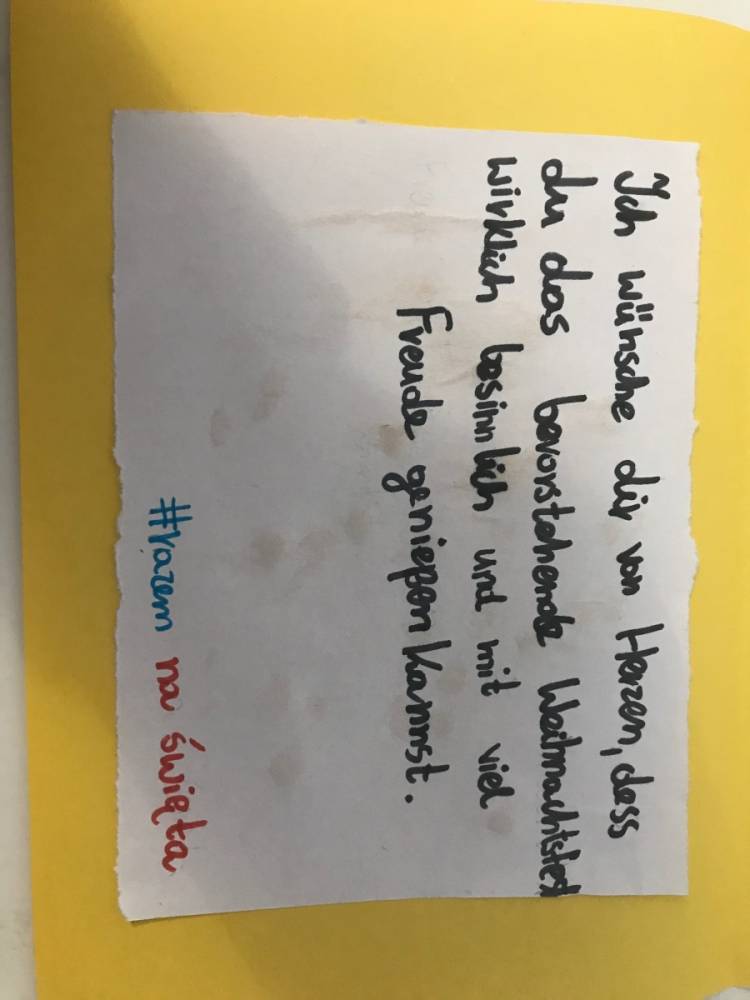Podczas lekcji języka niemieckiego uczniowie nauczyli się, w jaki sposób wyrazić to, co chcieliby przekazać innym w świąteczny czas Bożego Narodzenia, w języku, którego zawiłości poznają zaledwie od września.