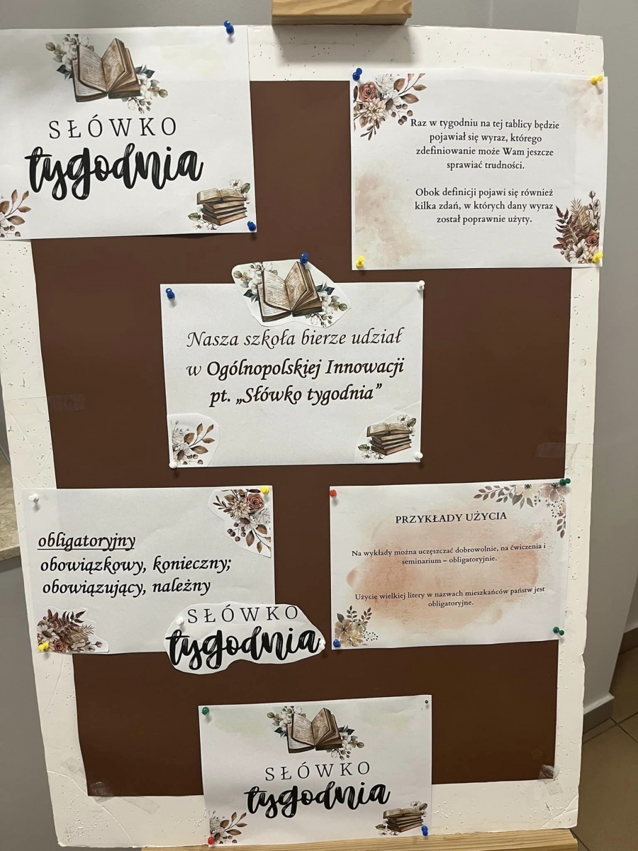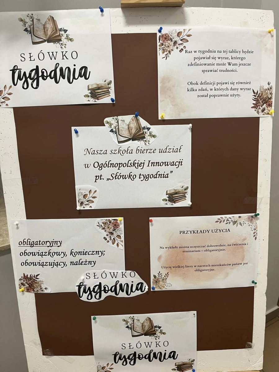 Uczniowie naszej szkoły od poniedziałku 20 listopada przystępują do Ogólnopolskiej Innowacji Pedagogicznej „Słówko tygodnia”, której autorką jest Irmina Żarska.