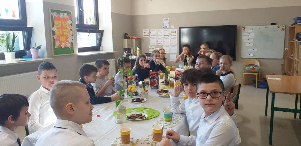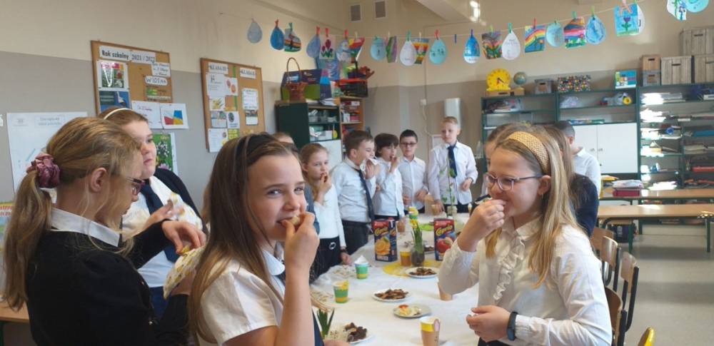 Na klasowych stołach nie zabrakło oczywiście jajek, bab wielkanocnych, a także innych pysznych smakołyków.