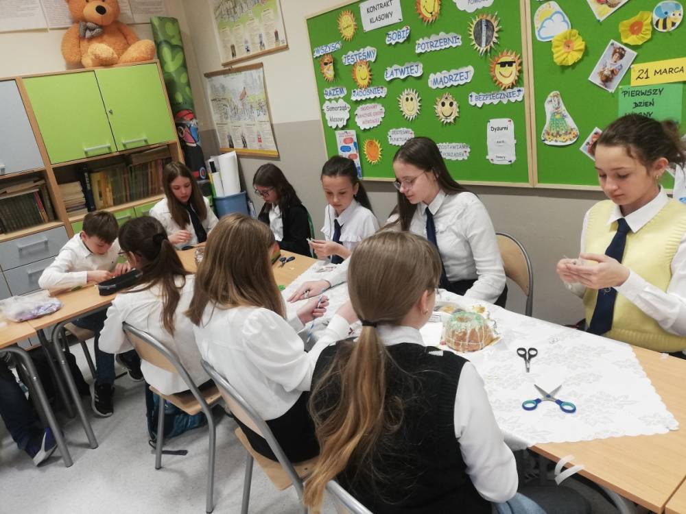 Aby wprowadzić wszystkich w niezwykłą atmosferę tych najważniejszych świąt uczniowie poznawali świąteczne zwyczaje Małopolski, oglądali film edukacyjny o tradycjach wielkanocnych, a także uczestniczyli w warsztatach plastycznych, w czasie których nie zabrakło baranków, kurczaczków, owieczek, pisanek i kurek.