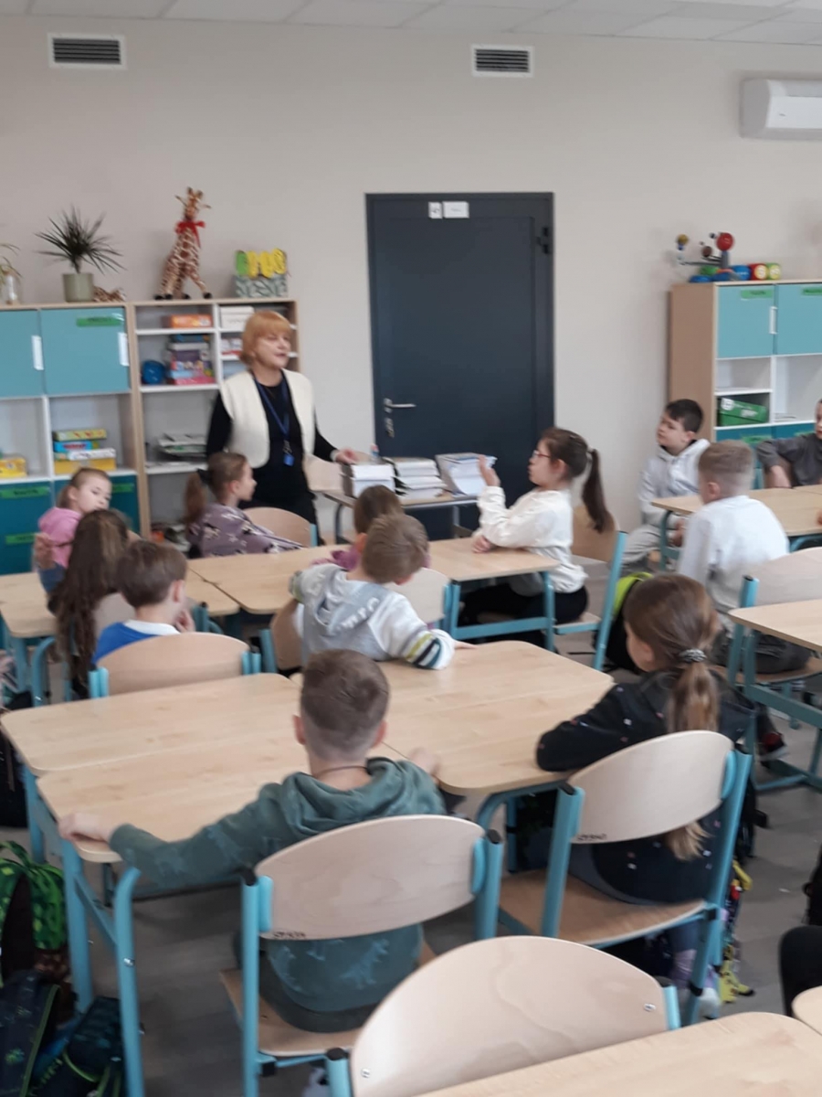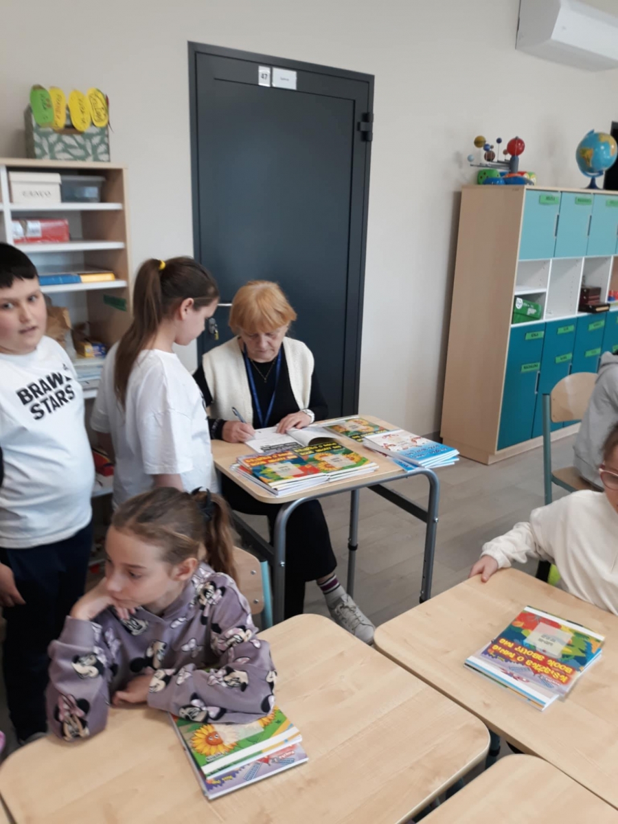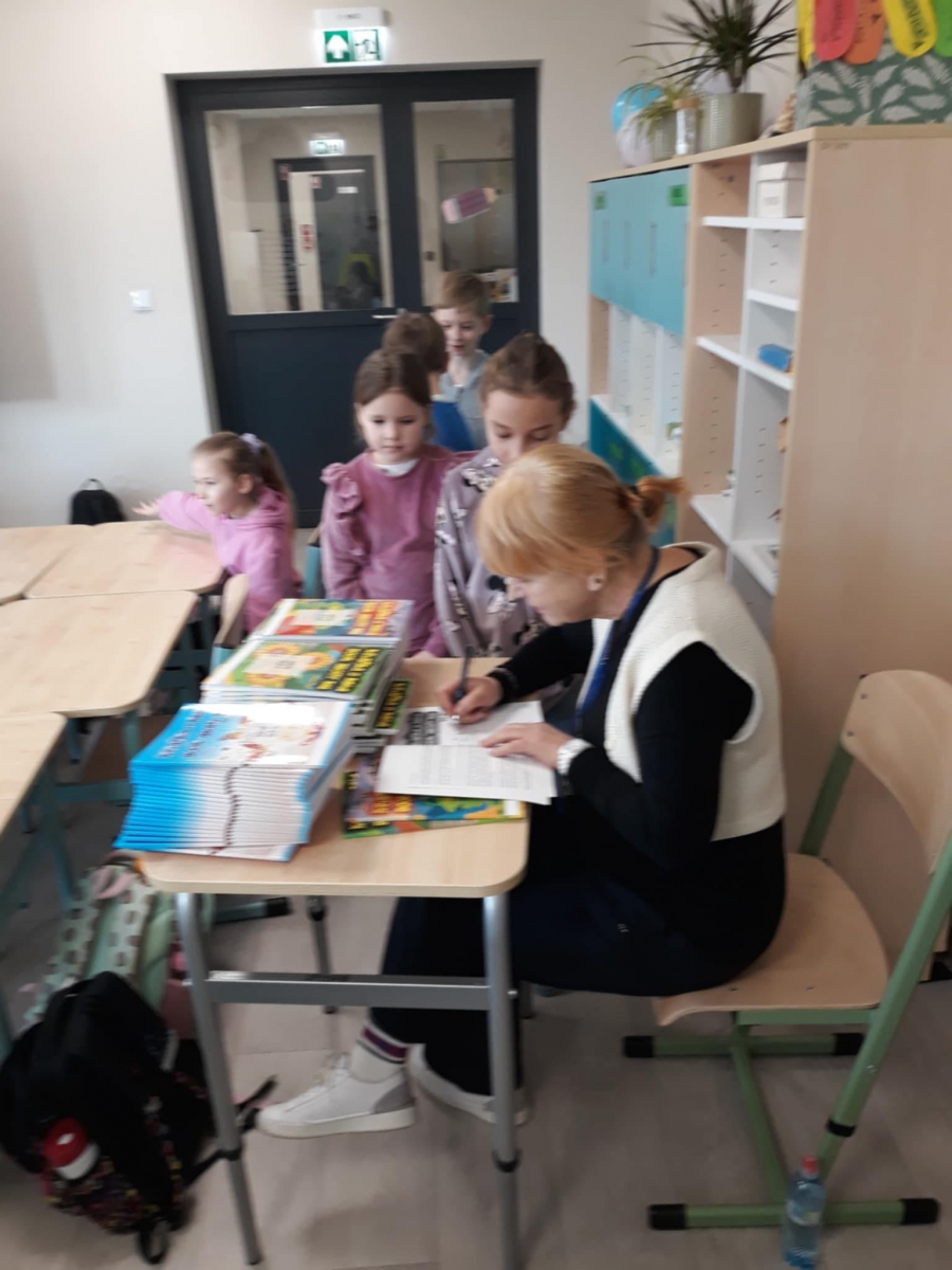 Podczas rozmowy dzieci zadawały pytania, odkrywały, jak rodzą się pomysły na opowieści i jak wygląda praca pisarza od pierwszej myśli aż po gotową książkę. Spotkanie stało się pięknym zwieńczeniem pracy lekcyjnej nad tematyką książki i czytelnictwa.