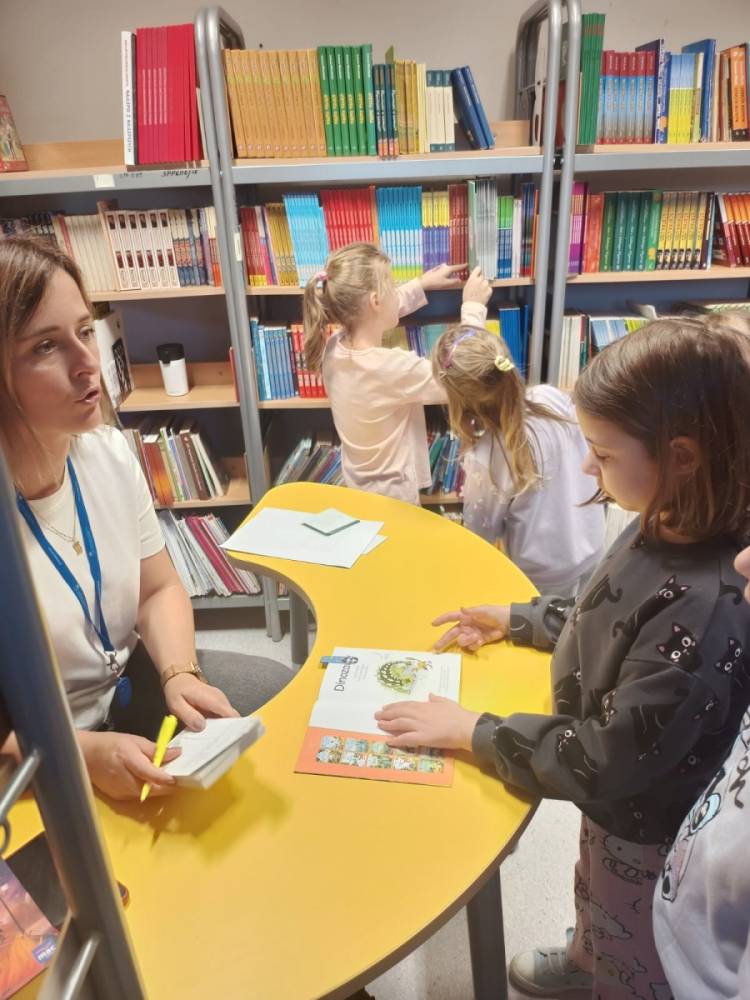Podczas zajęć dzieci rozwiązywały zagadki dotyczące znanych bajek, poznały zasady zachowania w bibliotece oraz dowiedziały się, jak korzystać z jej zbiorów. Najważniejszym momentem było jednak pasowanie na pełnoprawnych czytelników. Pierwszoklasistom założono karty czytelnicze i każdy mógł wypożyczyć swoją pierwszą książkę z biblioteki szkolnej.