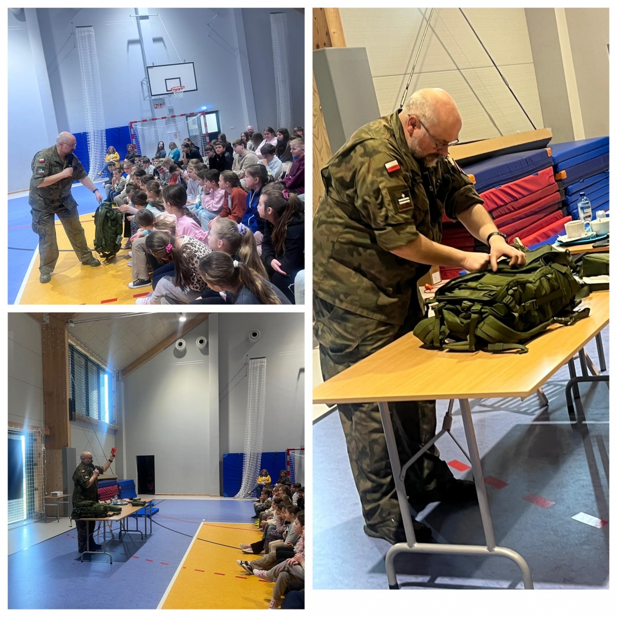 Prowadzący omówił, jakie wyposażenie powinno znaleźć się w takim plecaku, do czego służą poszczególne elementy oraz jak odpowiednio przygotować się na nagłe sytuacje wymagające szybkiej ewakuacji. Uczniowie mogli zobaczyć przykładowe wyposażenie oraz dowiedzieć się, jak w praktyce zadbać o własne bezpieczeństwo i bezpieczeństwo swoich bliskich.
